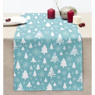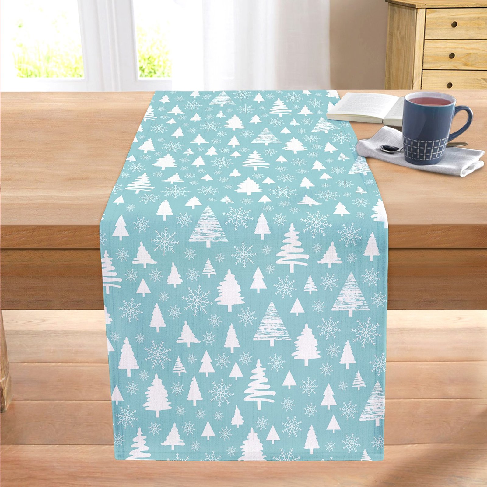 Renkli Zemin Üzerinde Yılbaşı Desenli Dijital Baskılı Modern Dikişli Şönil Runner