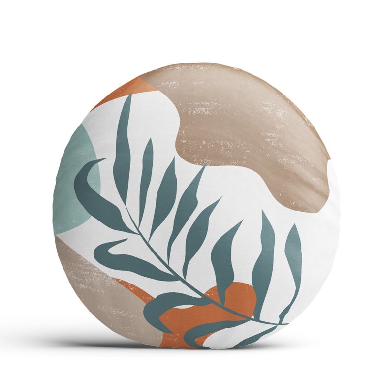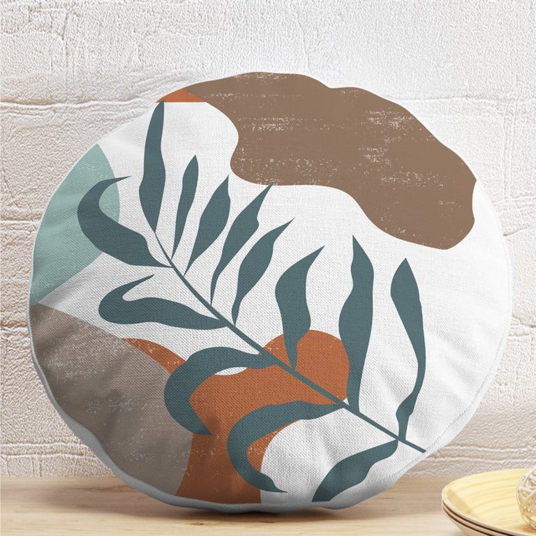 Renkli Zemin Yaprak Motifli Dijital Baskılı Modern Yuvarlak Yastık Kırlent Kılıfı
