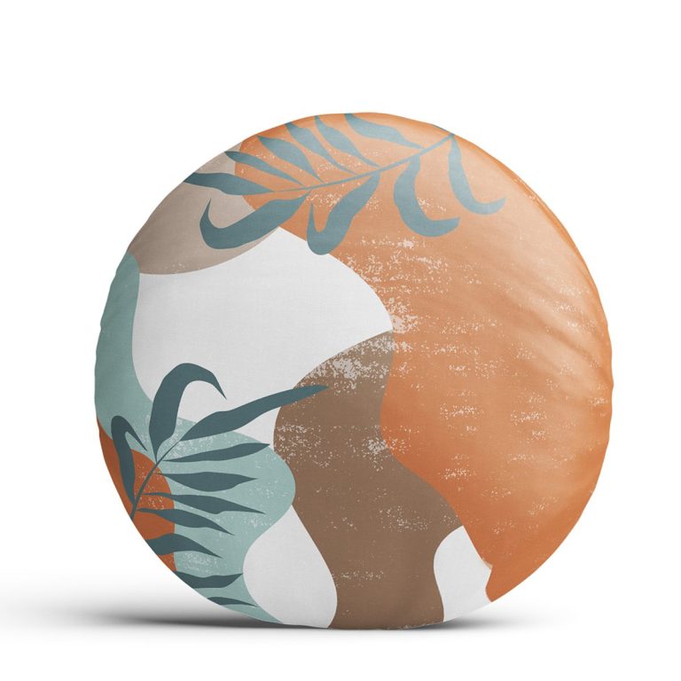 Renkli Zemin Yaprak Motifli Dijital Baskılı Modern Yuvarlak Yastık Kırlent Kılıfı