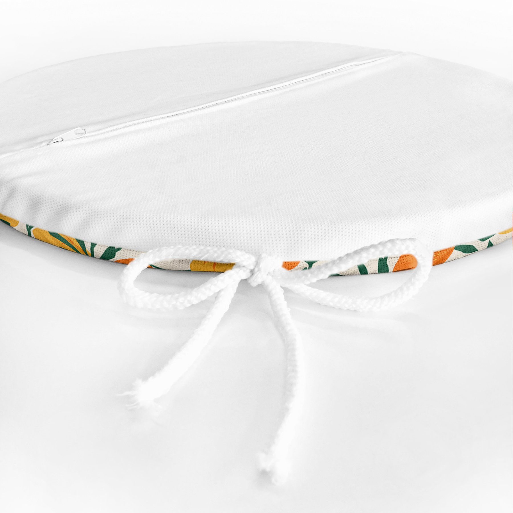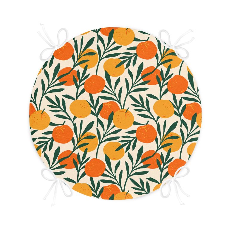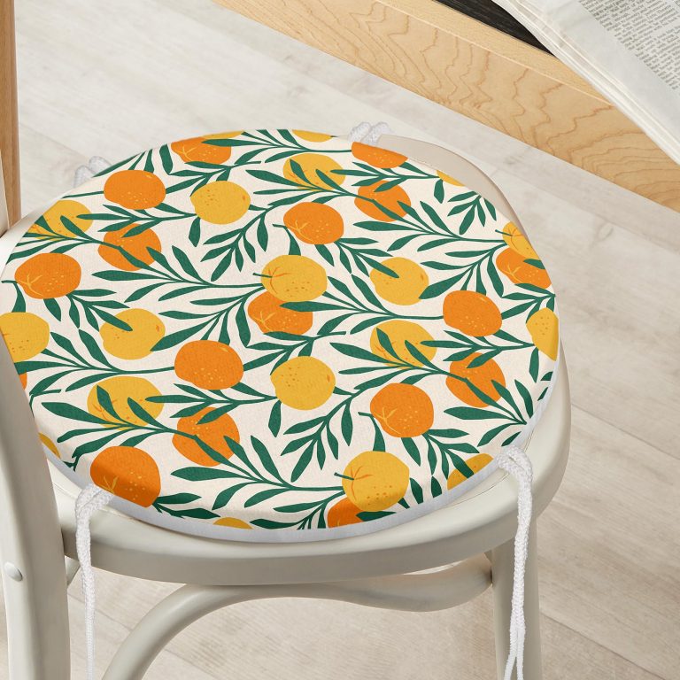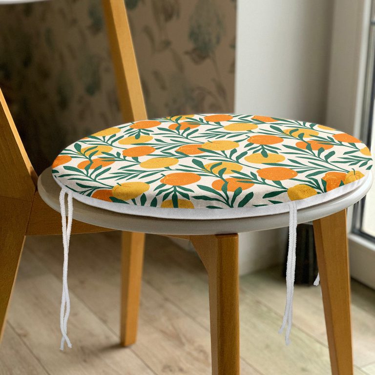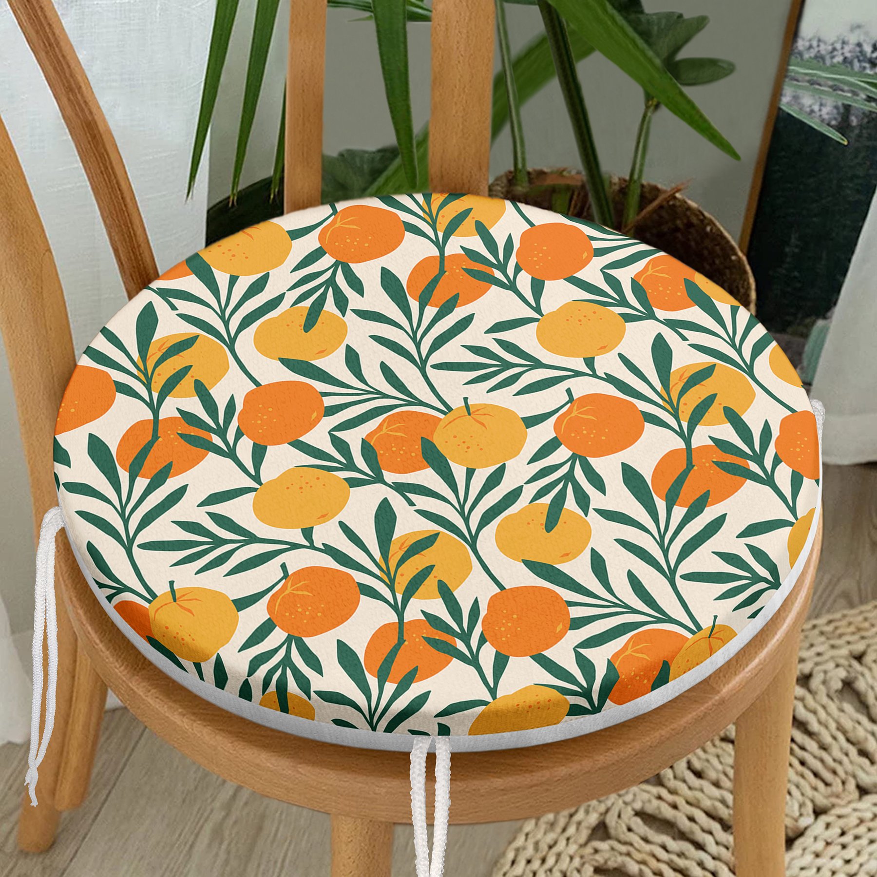 Renkli Zeminde Onedraw Çizimli Limon Desenli Dijital Baskılı Modern Yuvarlak Fermuarlı Sandalye Minderi