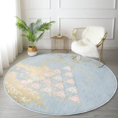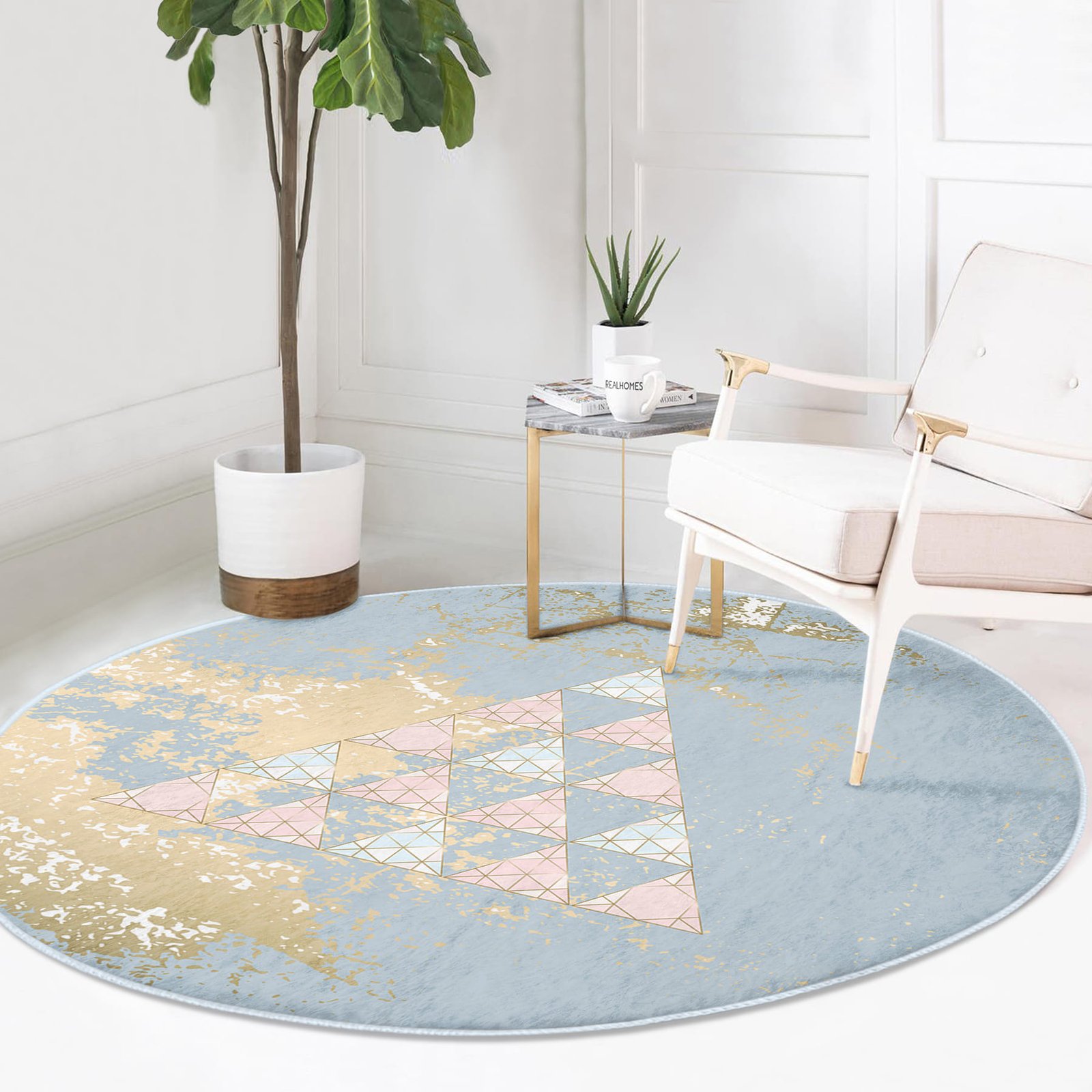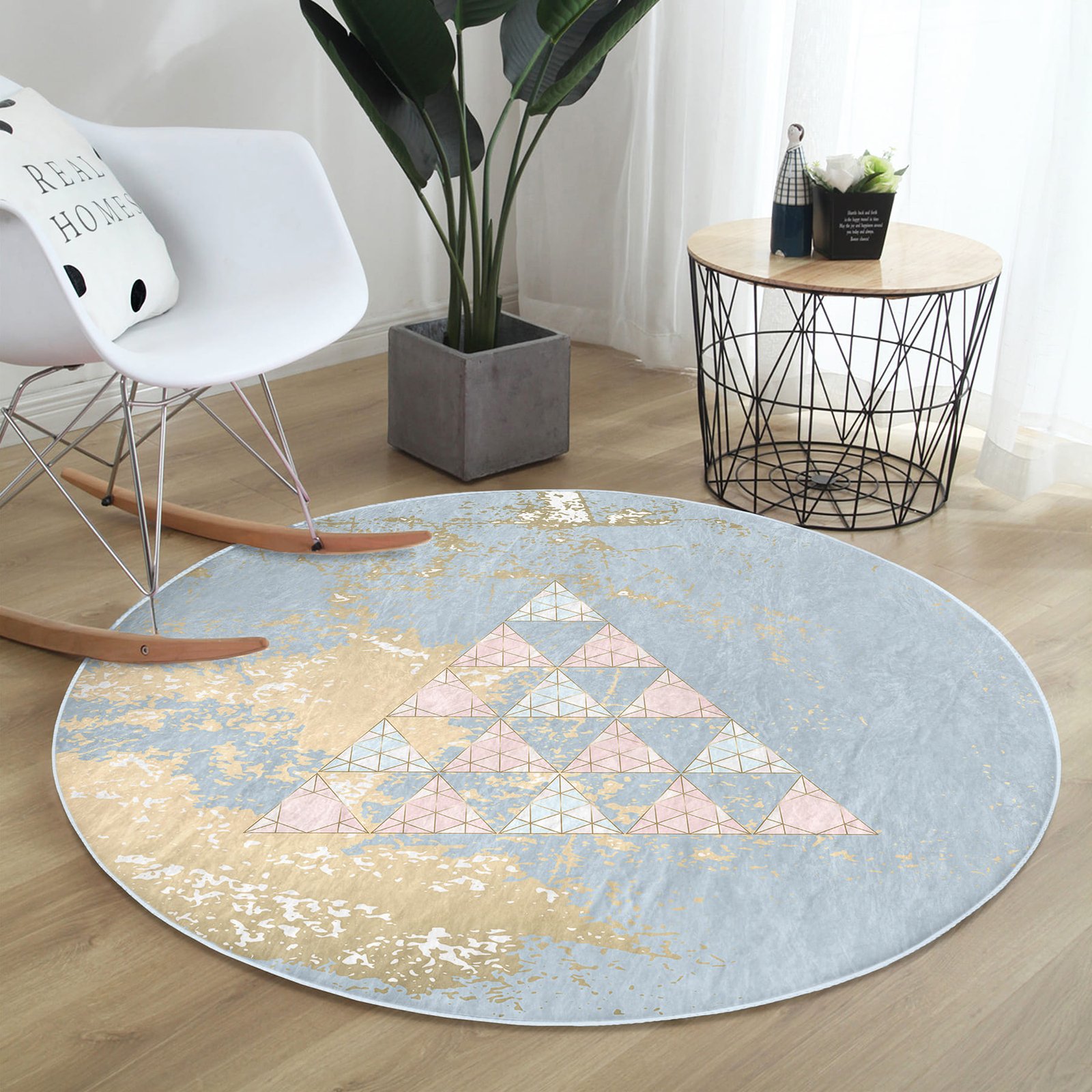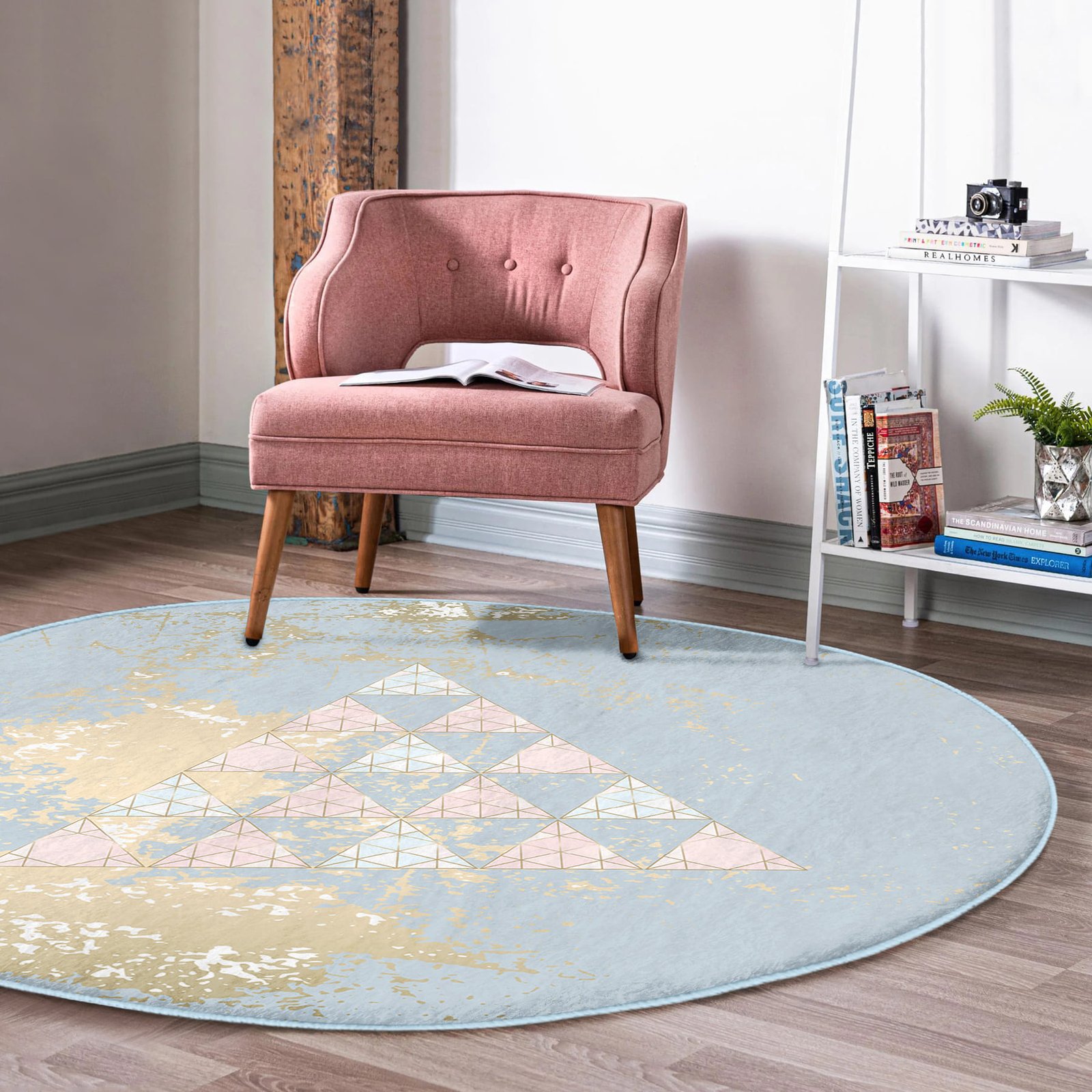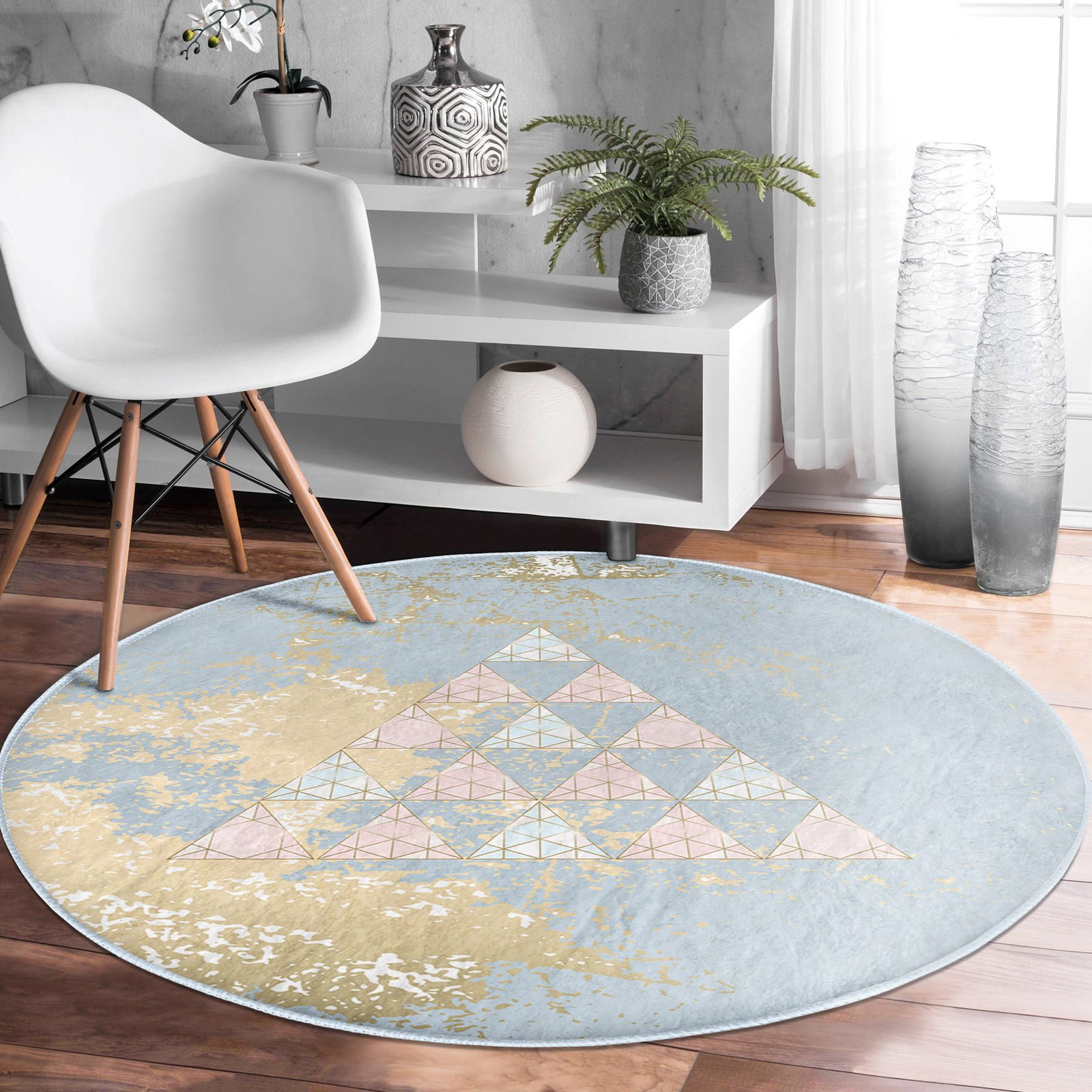 Renkli Zeminde Üçgen Desenli Modern Salon Ve Oturma Odası Yıkanabilir Kaymaz Tabanlı Yuvarlak Halı