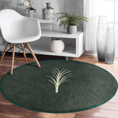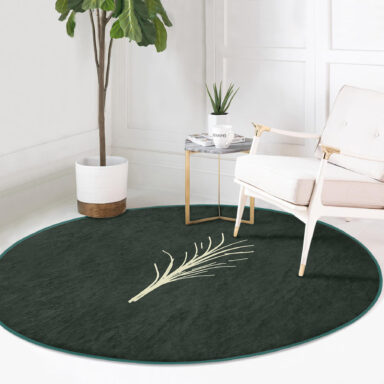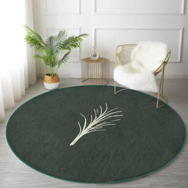 Renkli Zeminde Yaprak Desenli Yeşil Salon Ve Oturma Odası Yıkanabilir Kaymaz Tabanlı Yuvarlak Halı