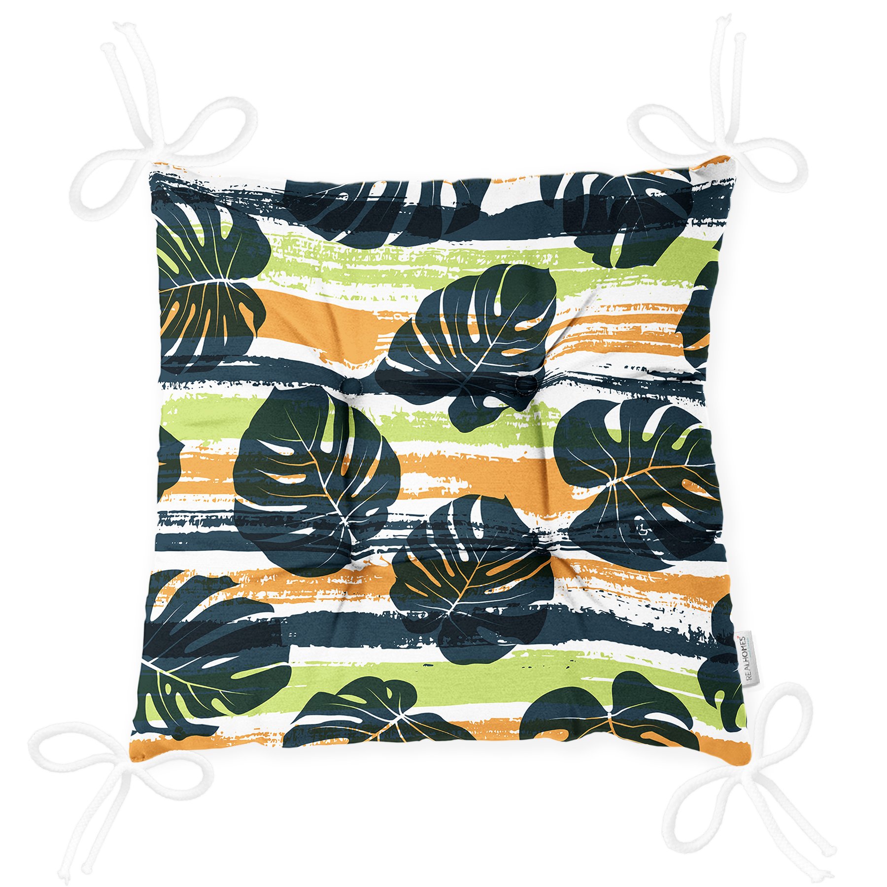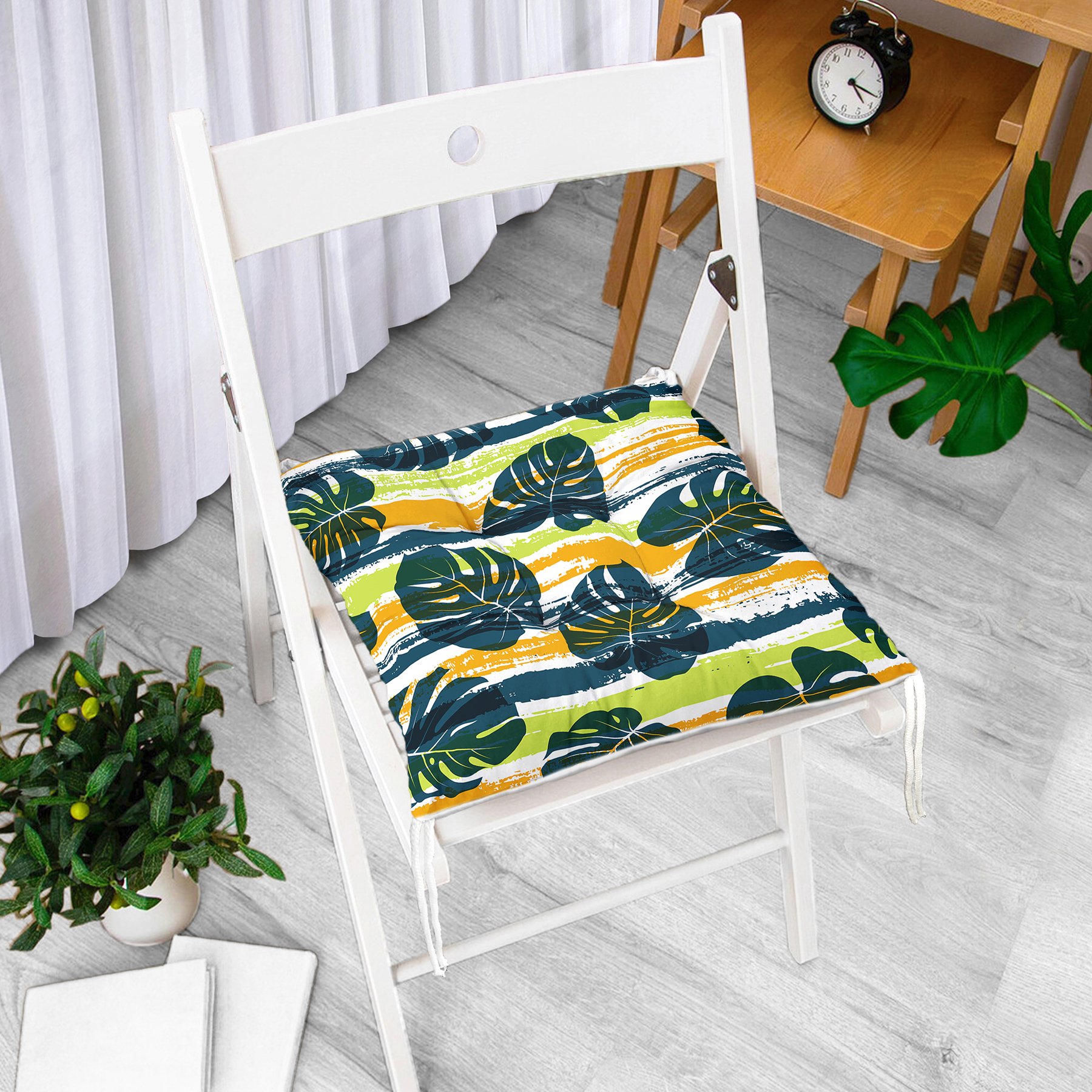 Renkli Zeminde Yaprak Motifli Dijital Baskılı Modern Pofidik Sandalye Minderi