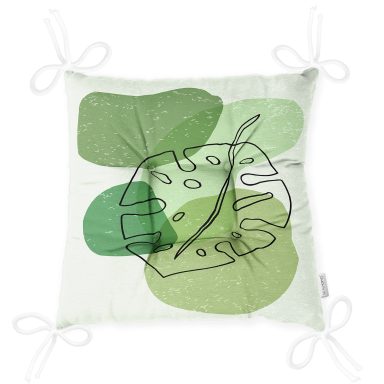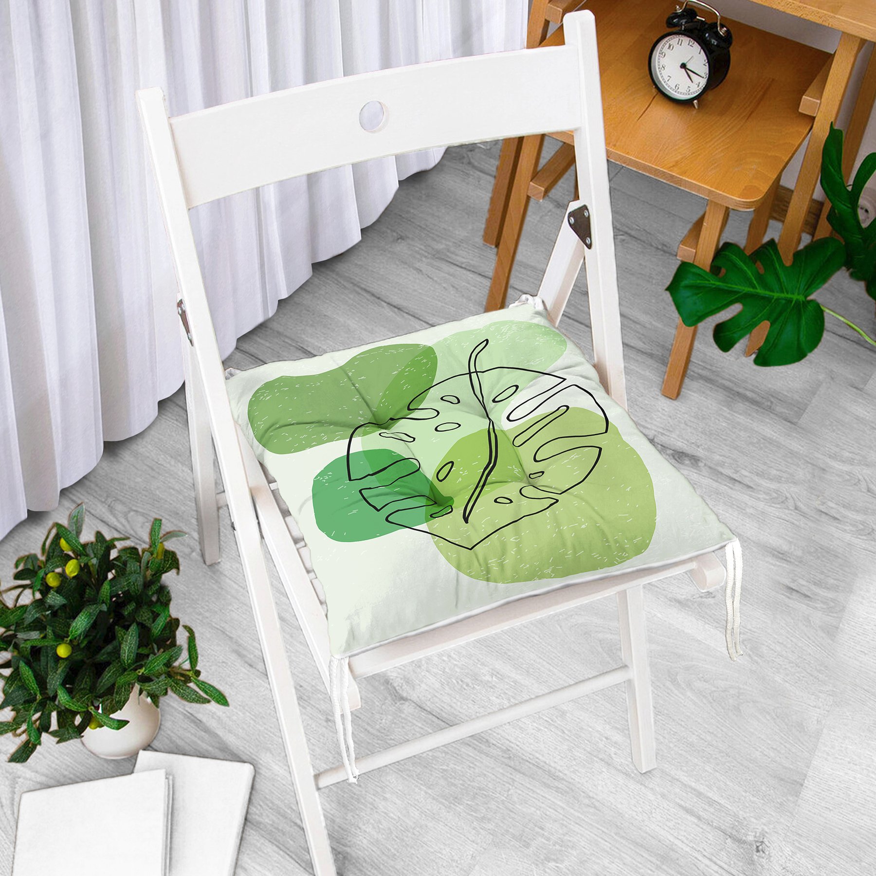 Renkli Zeminde Yaprak Motifli Dijital Baskılı Modern Pofidik Sandalye Minderi