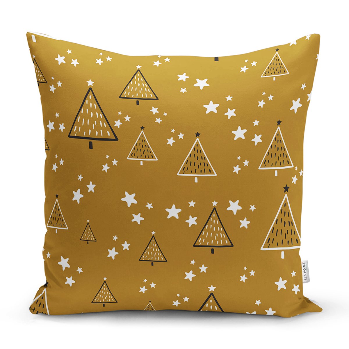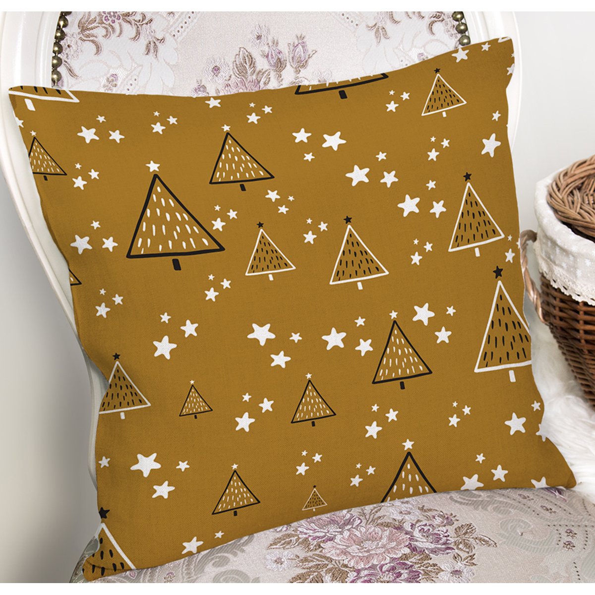 Renkli Zeminli Çam Ağacı Desenli Dijital Baskılı Modern Yastık Kırlent Kılıfı