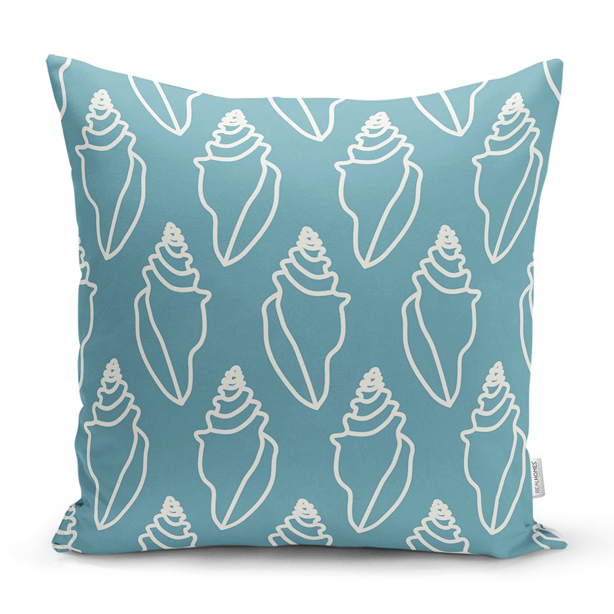 Renkli Zeminli Deniz Kabuğu Desenli Dijital Baskılı Modern Yastık Kırlent Kılıfı