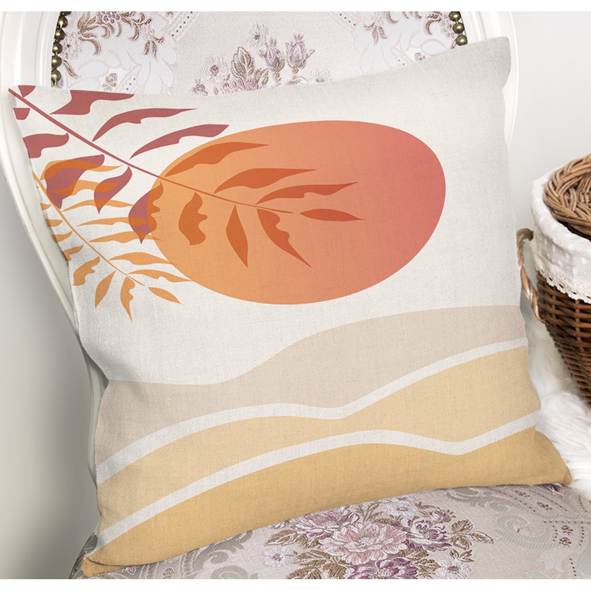 Renkli Zeminli Onedraw Çizimli Çöl Manzara Temalı Modern Yastık Kırlent Kılıfı