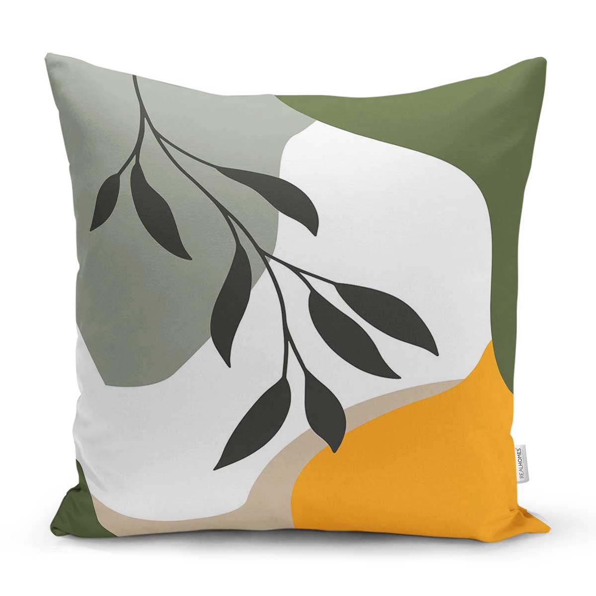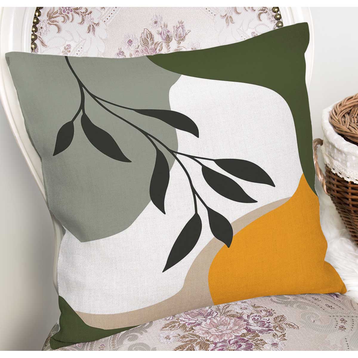 Renkli Zeminli Onedraw Çizimli Yaprak Desenli Dijital Baskılı Modern Yastık Kılıfı