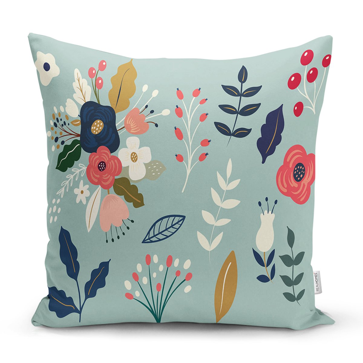 Renkli Zeminli Renkli Çiçek Desenli Dijital Baskılı Modern Yastık Kırlent Kılıfı
