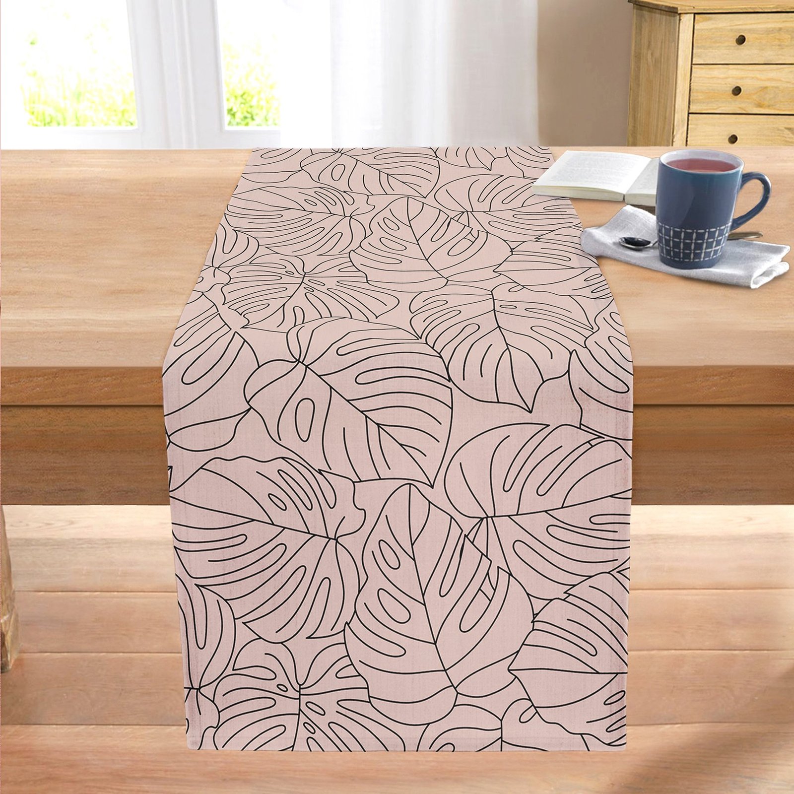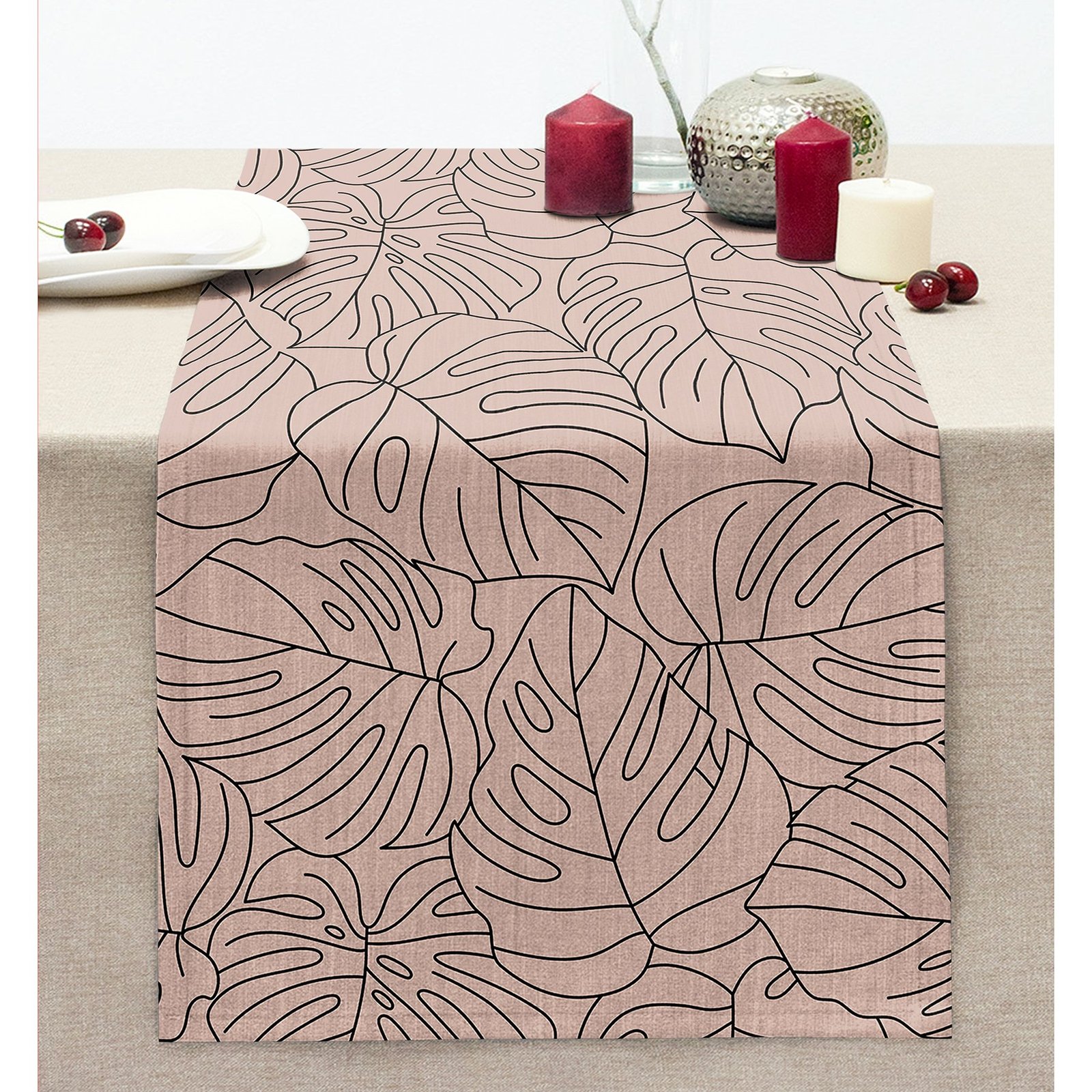 Renkli Zeminli Yaprak Desenli Dijital Baskılı Modern Dikişli Şönil Runner
