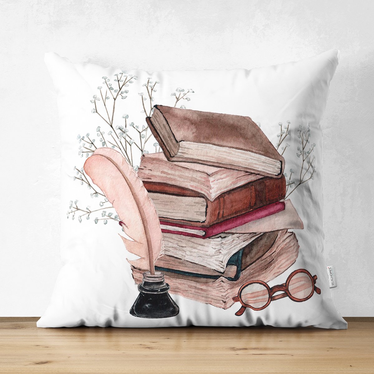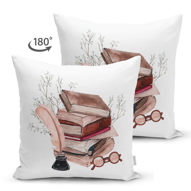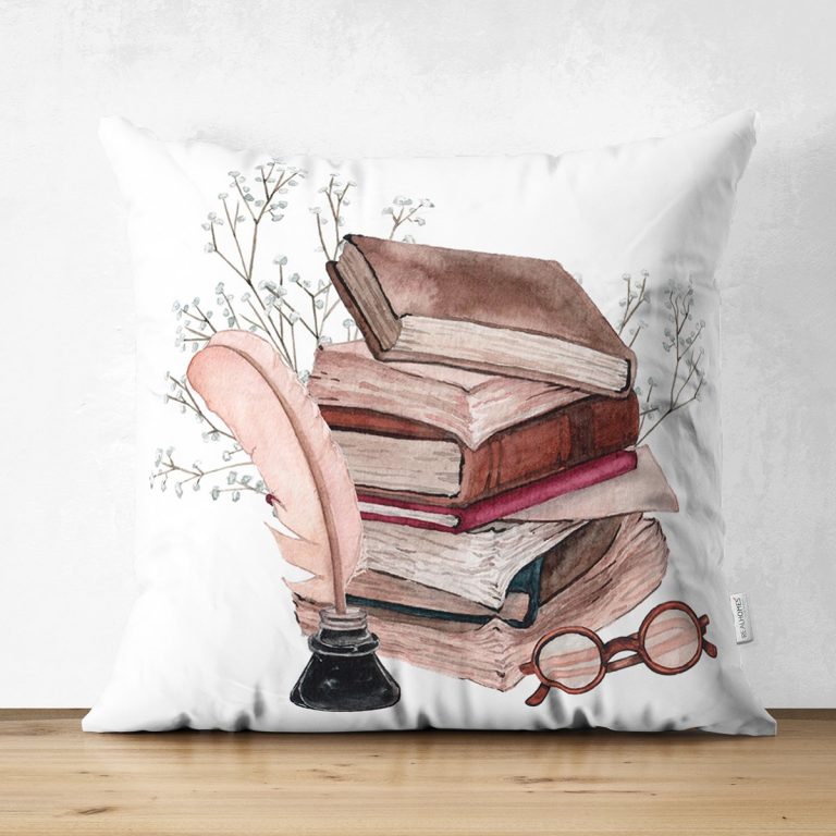 Retro Defter & Tüylü Kalem Tasarımlı Dijital Baskılı Modern Süet Yastık Kırlent Kılıfı