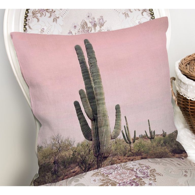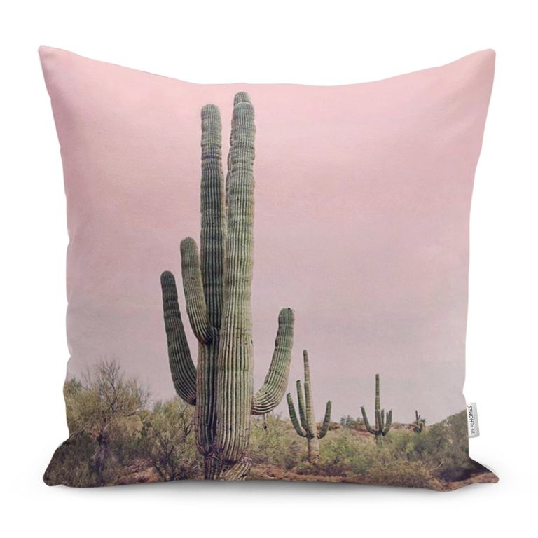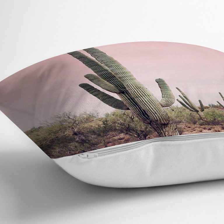 Retro Kaktüs Resimli Dijital Baskılı Modern Yastık Kırlent Kılıfı