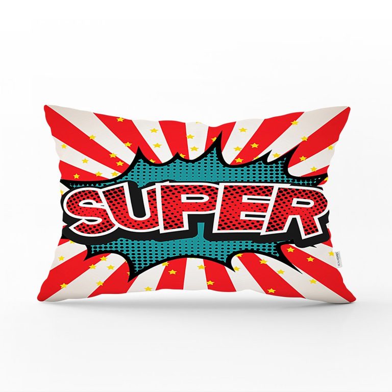Retro Super Tasarımlı Dijital Baskılı Modern Dikdörtgen Yastık Kırlent Kılıfı