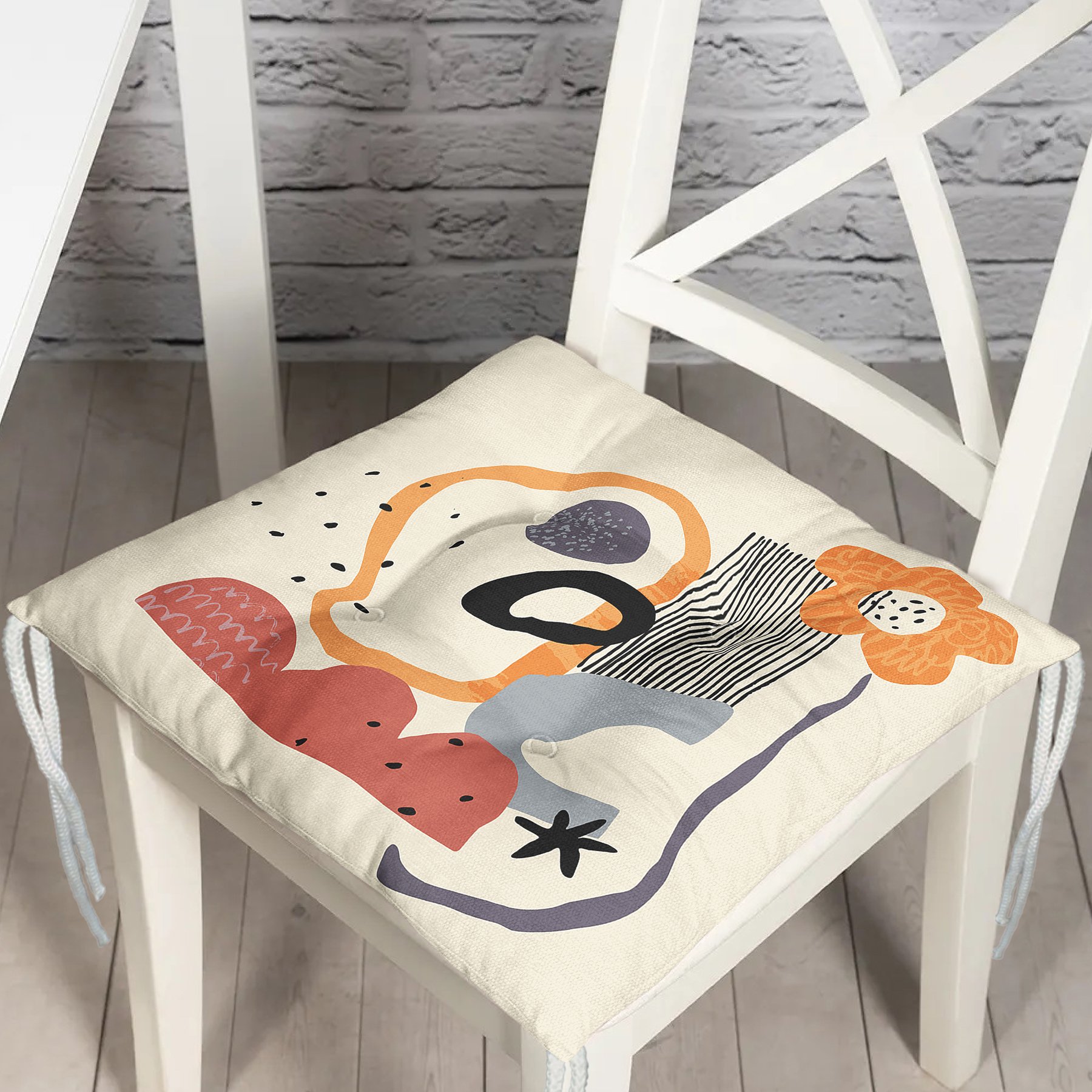 Sanatsal Motifli Çiçek Detaylı Dijital Baskılı Modern Pofidik Sandalye Minderi