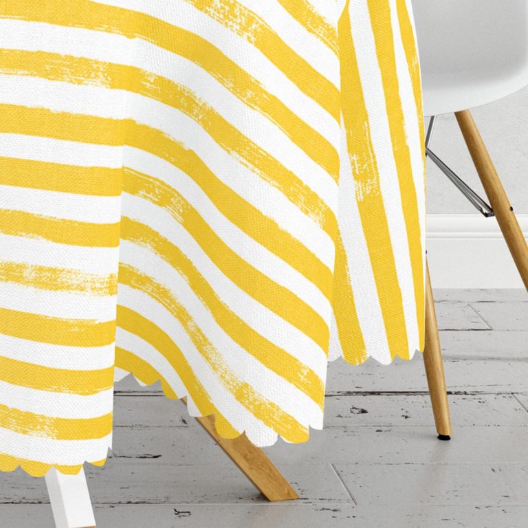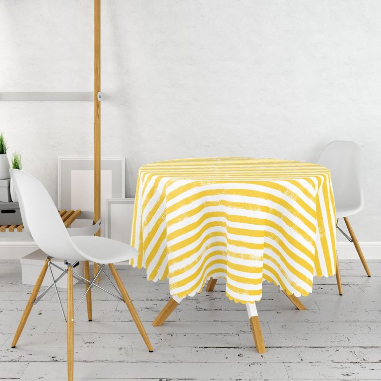 Sarı Çizgili Motifli Modern Dijital Baskılı Yuvarlak Masa Örtüsü – Çap 140cm