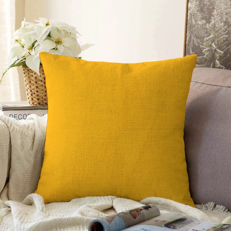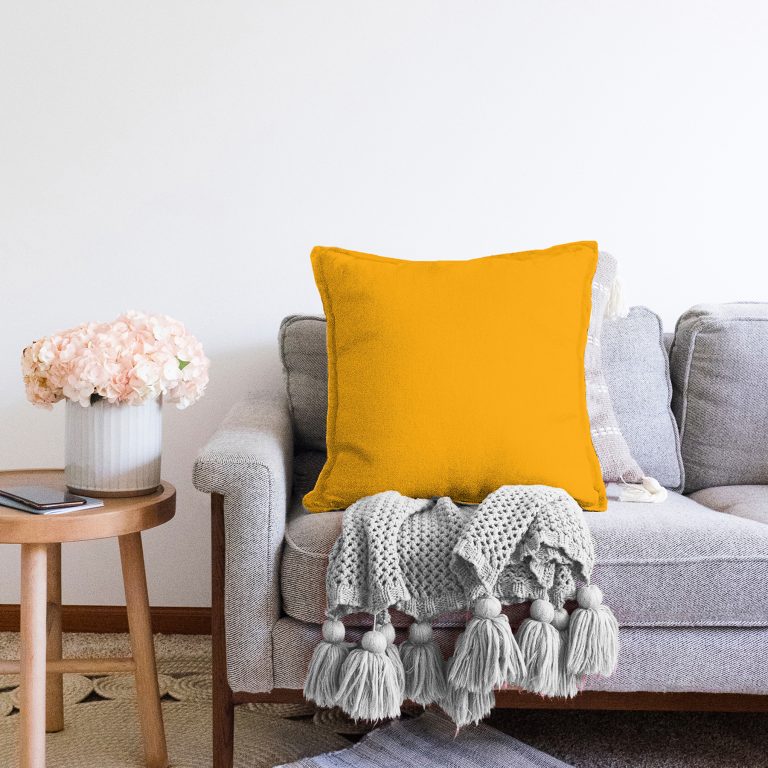 Sarı Düz Renkli Dijital Baskılı Raşel Yastık Kırlent Kılıfı