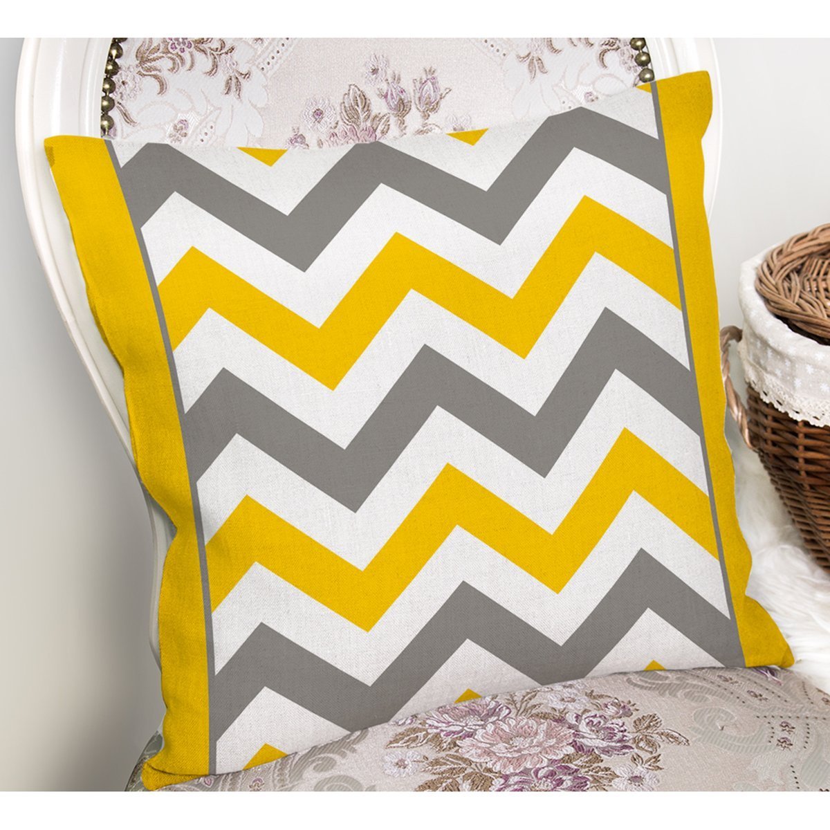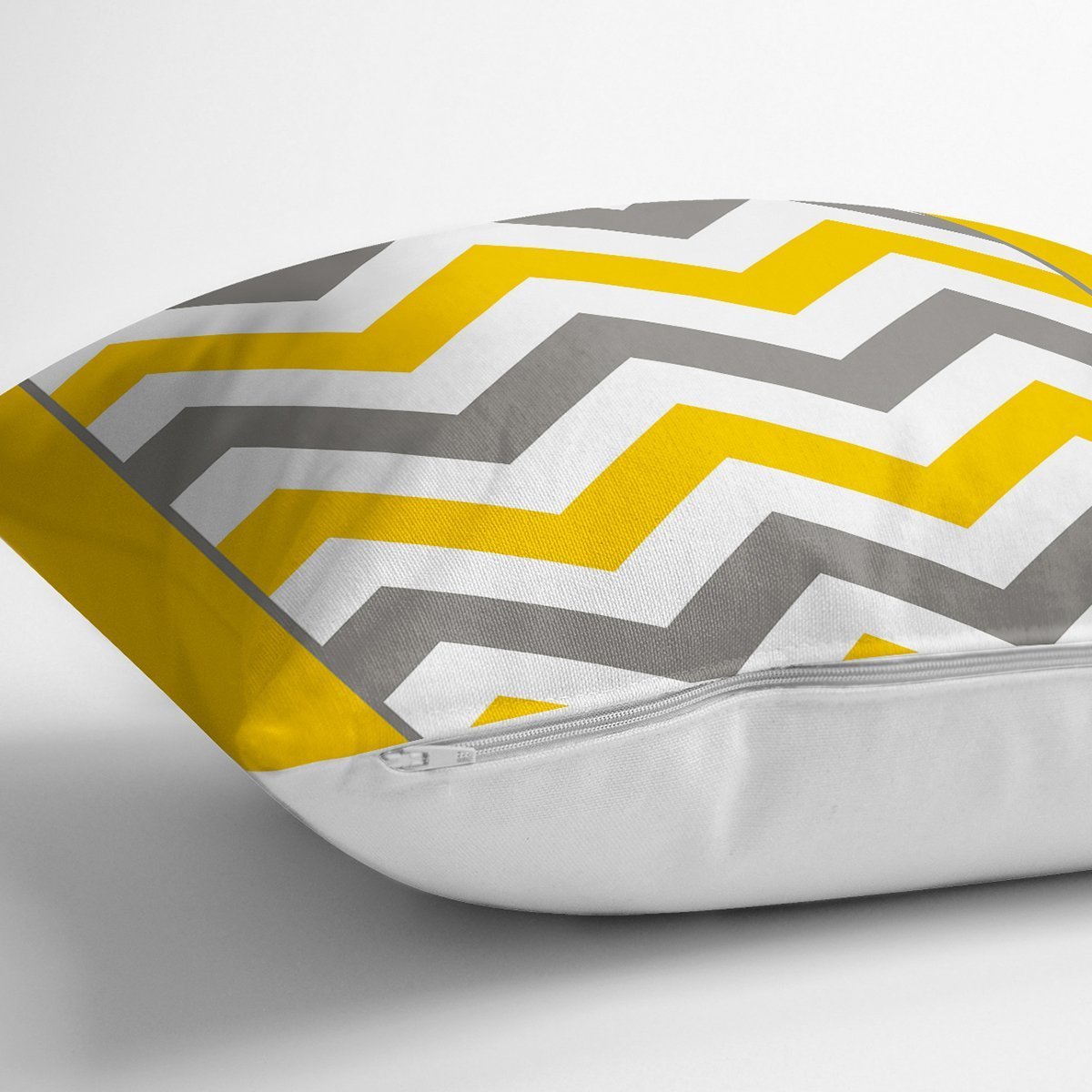 Sarı Gri Zigzag Desenli Dijital Baskılı Yastık Kırlent Kılıfı