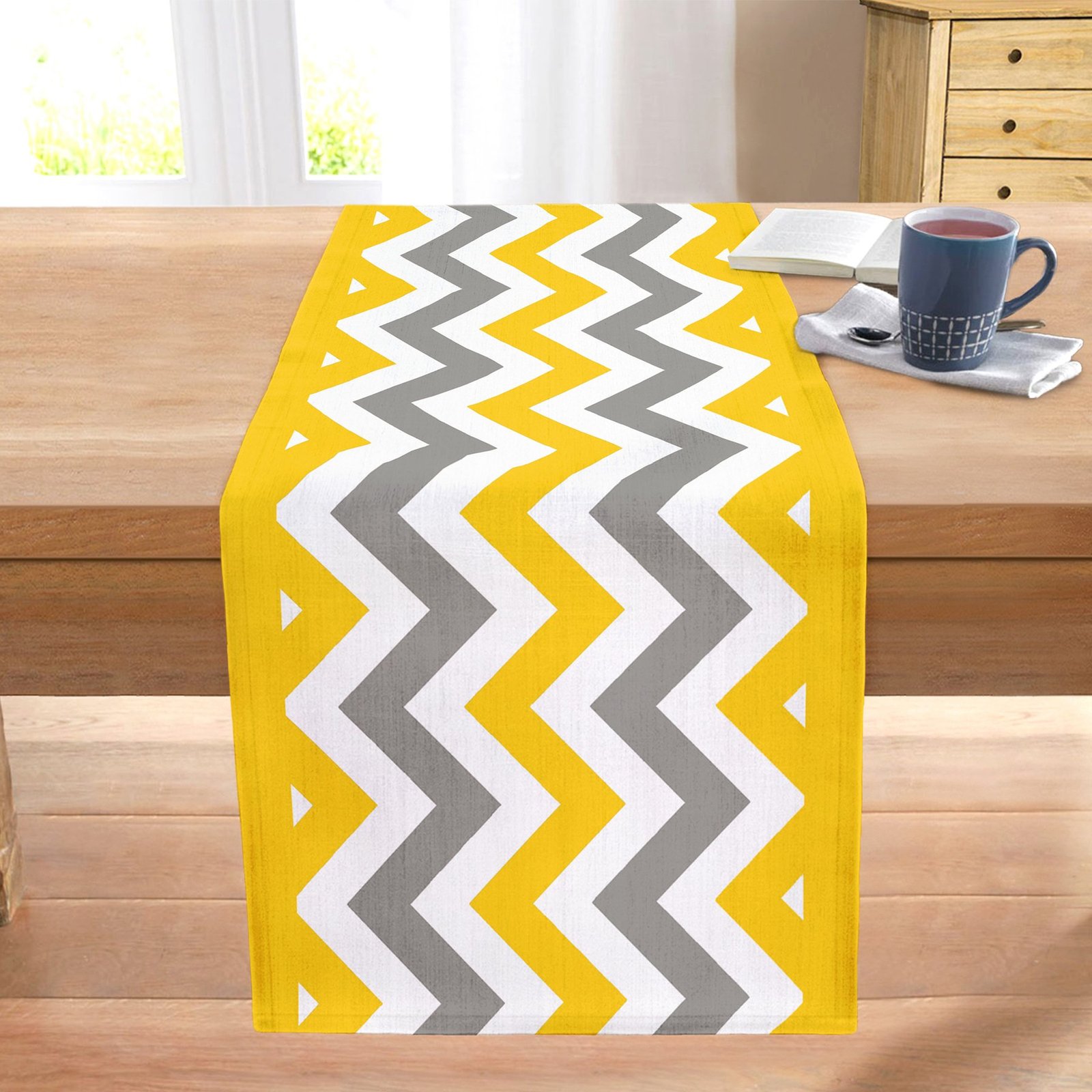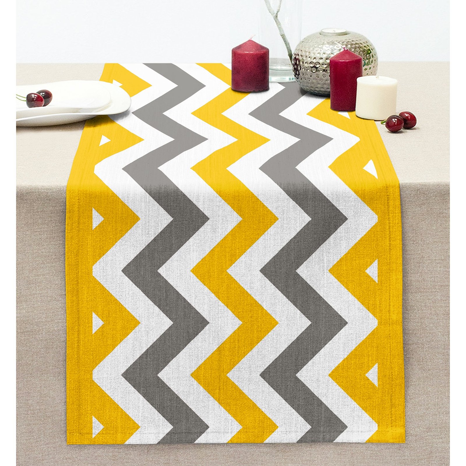 Sarı Gri Zigzag Motifli Özel Tasarım Modern Dikişli Şönil Runner