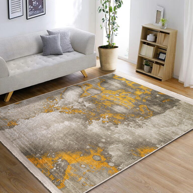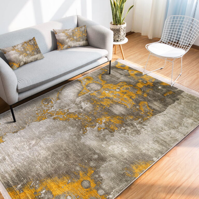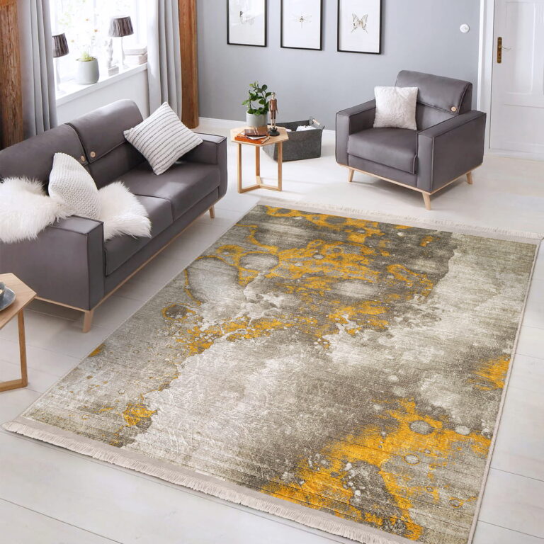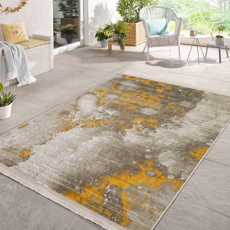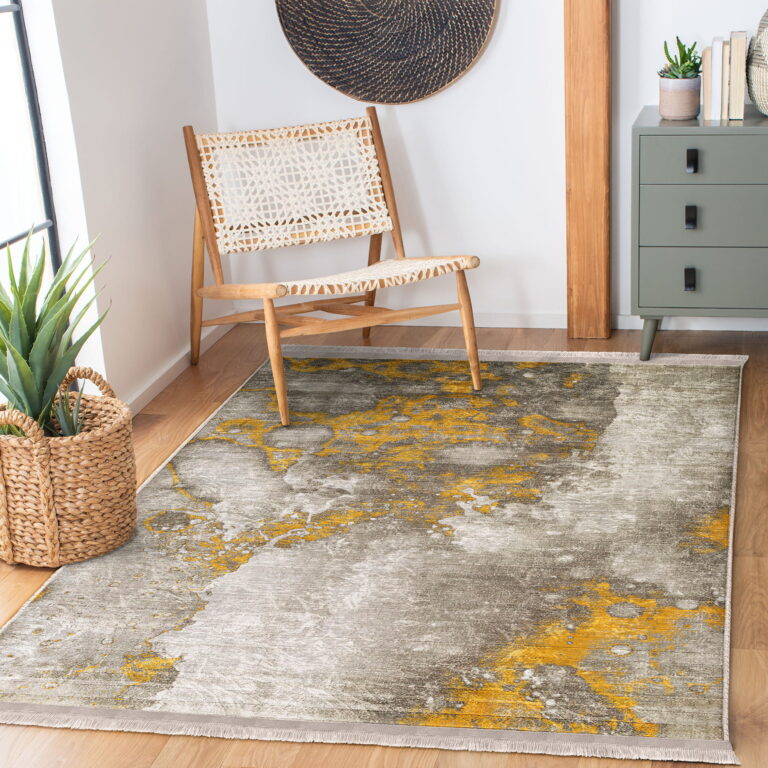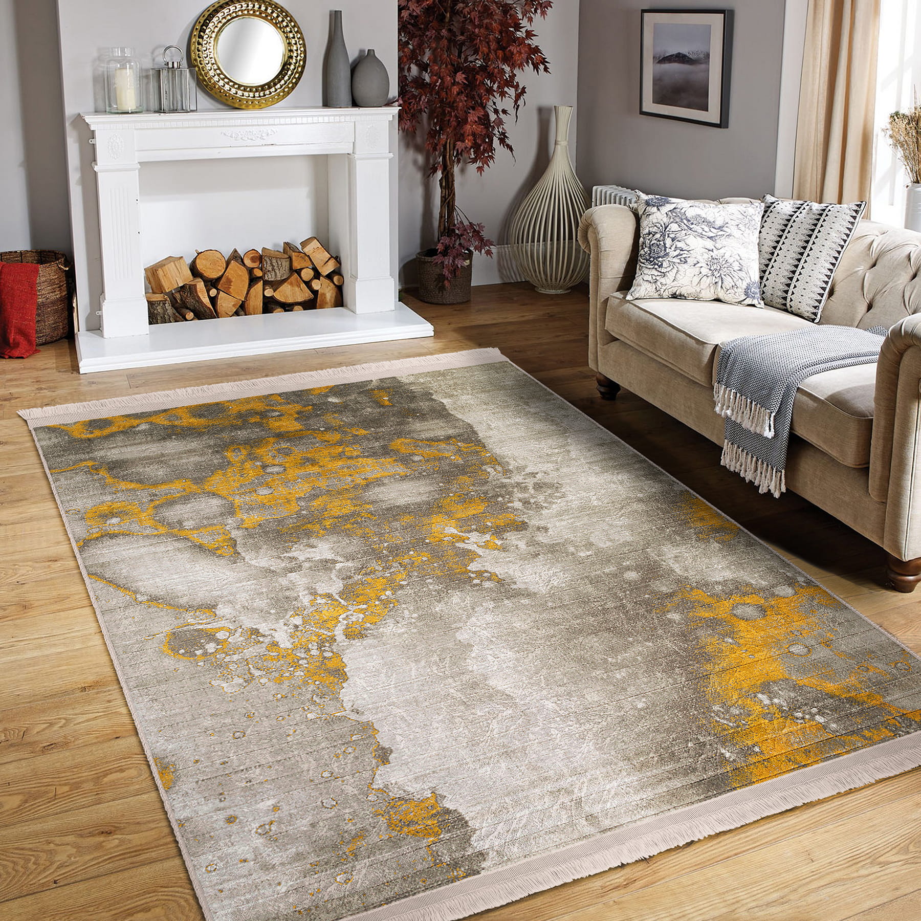 Sarı – Krem Zeminde Retro Motifli Eskitme Desenli Eskitme Motifli Klasik Salon & Oturma Odası Yatak Odası Dijital Baskılı Makinede Yıkanabilir Kaymaz Taban Saçaklı Halı