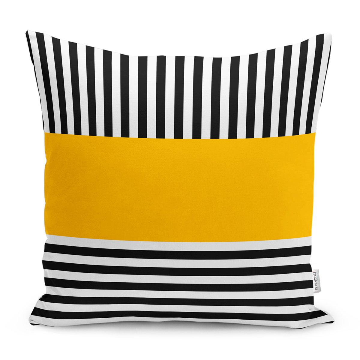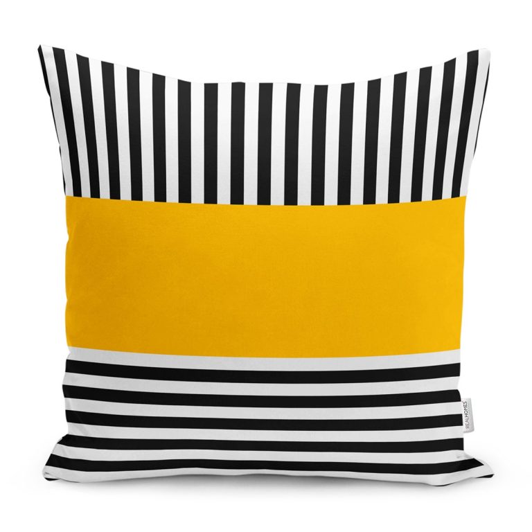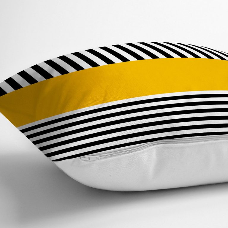 Sarı Zemin Siyah Çizgili Dijital Baskılı Modern Yastık Kırlent Kılıfı