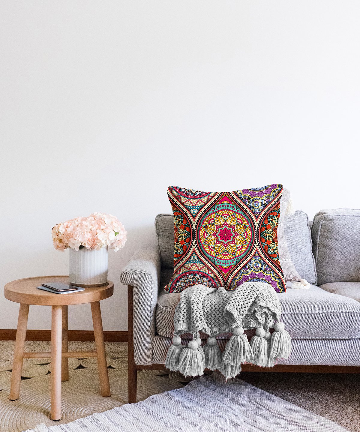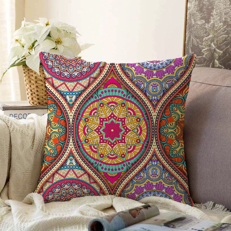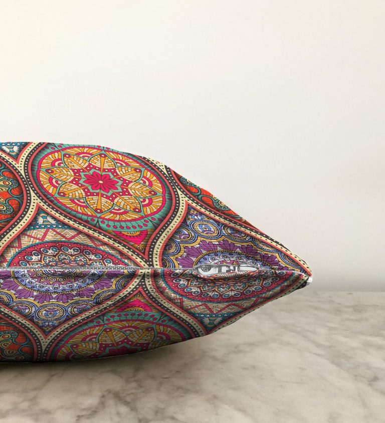Sarmal Daire Desenli Çini Motifli Dijital Baskılı Raşel Yastık Kırlent Kılıfı