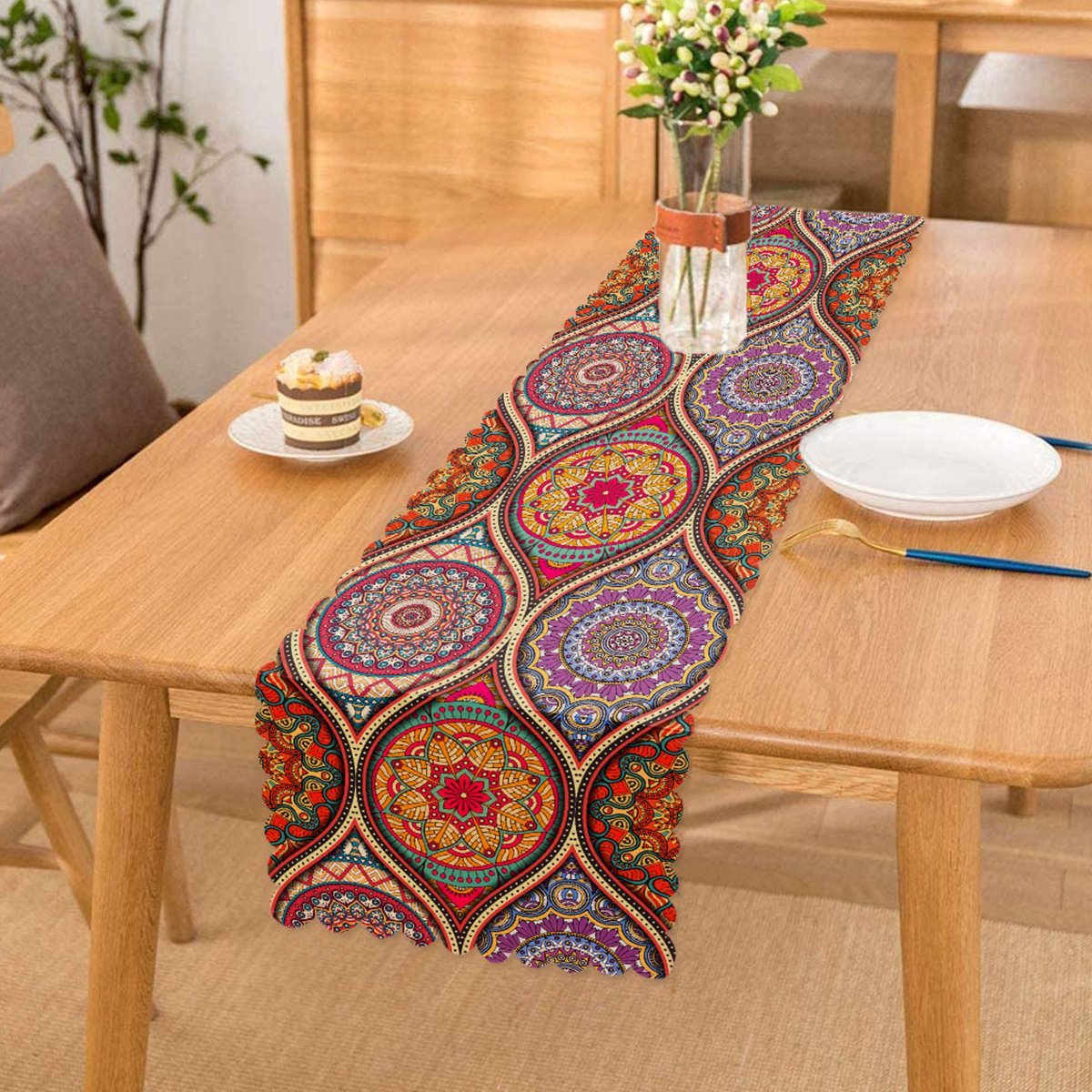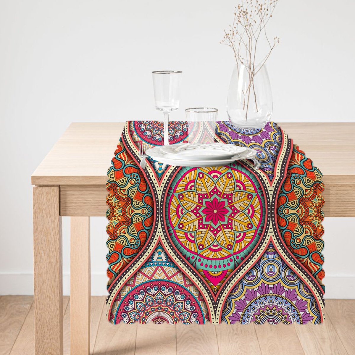 Sarmal Daire Desenli Çini Motifli Dijital Baskılı Özel Tasarım Runner