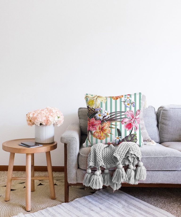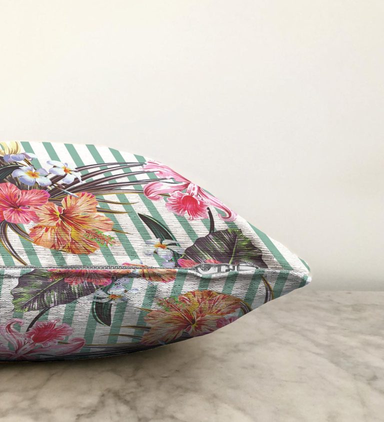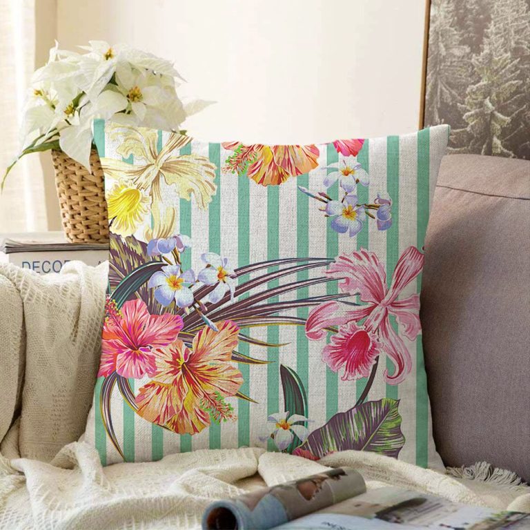 Şerit Temalı Sardunya Dijital Baskılı Dekoratif Raşel Yastık Kırlent Kılıfı