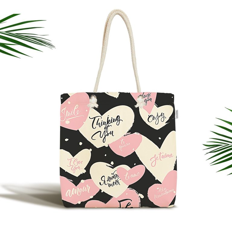 Sevgililer Günü Temalı Özel Tasarım Dijital Baskılı Modern Plaj Çantası