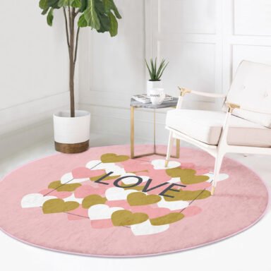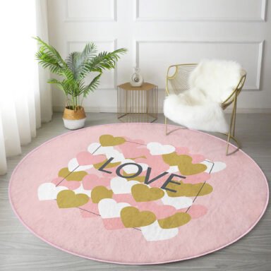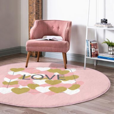 Sevgililer Günü Temalı Özel Tasarım Modern Pembe Yatak Odası Yıkanabilir Kaymaz Taban Yuvarlak Halı