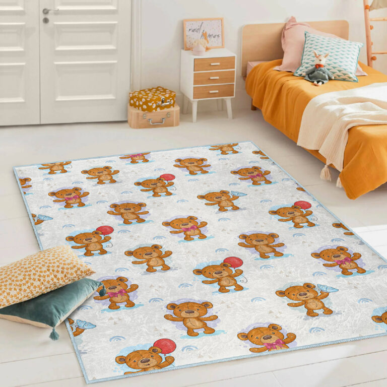 Sevimli Ayı Desenli Yıkanabilir Kaymaz Taban Çocuk Halısı – Renkli Dikdörtgen Halı
