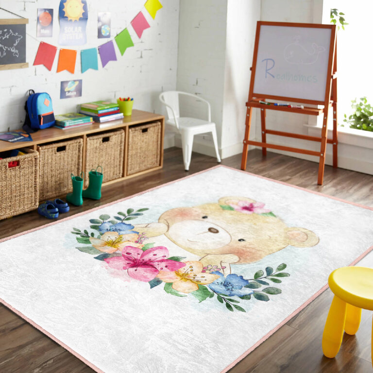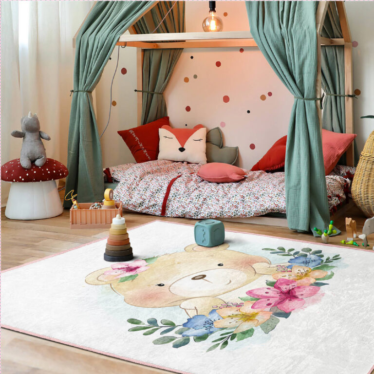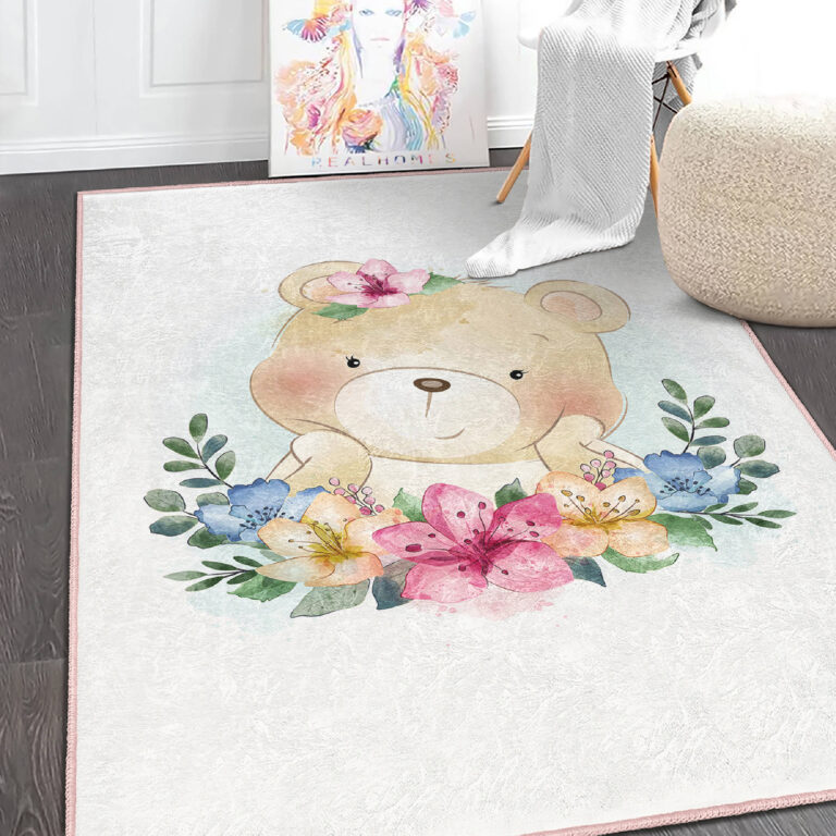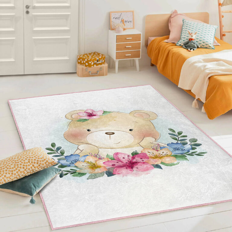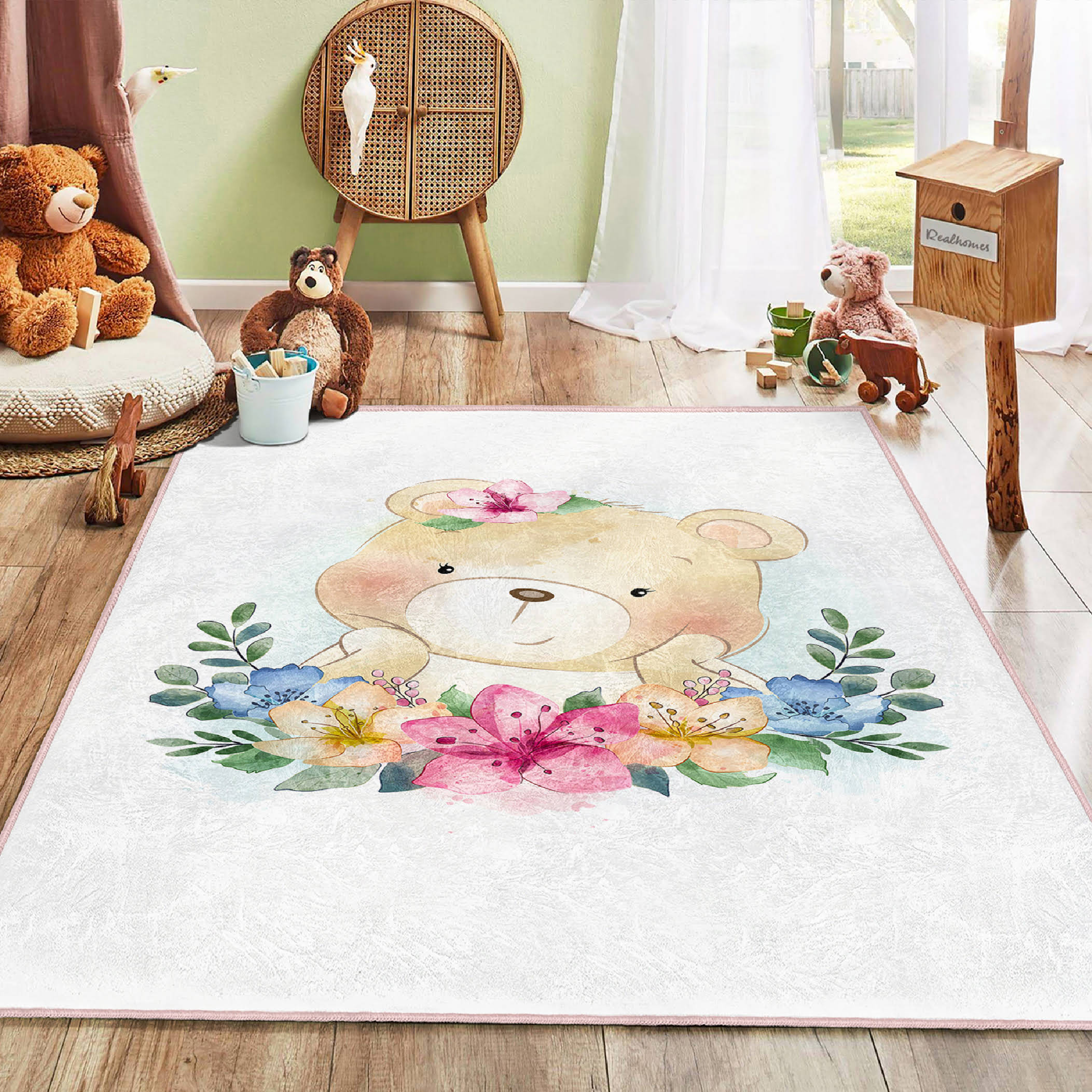 Sevimli Ayıcık Desenli Renkli 3D Dijital Baskılı Yıkanabilir Kaymaz Taban Çocuk Halısı
