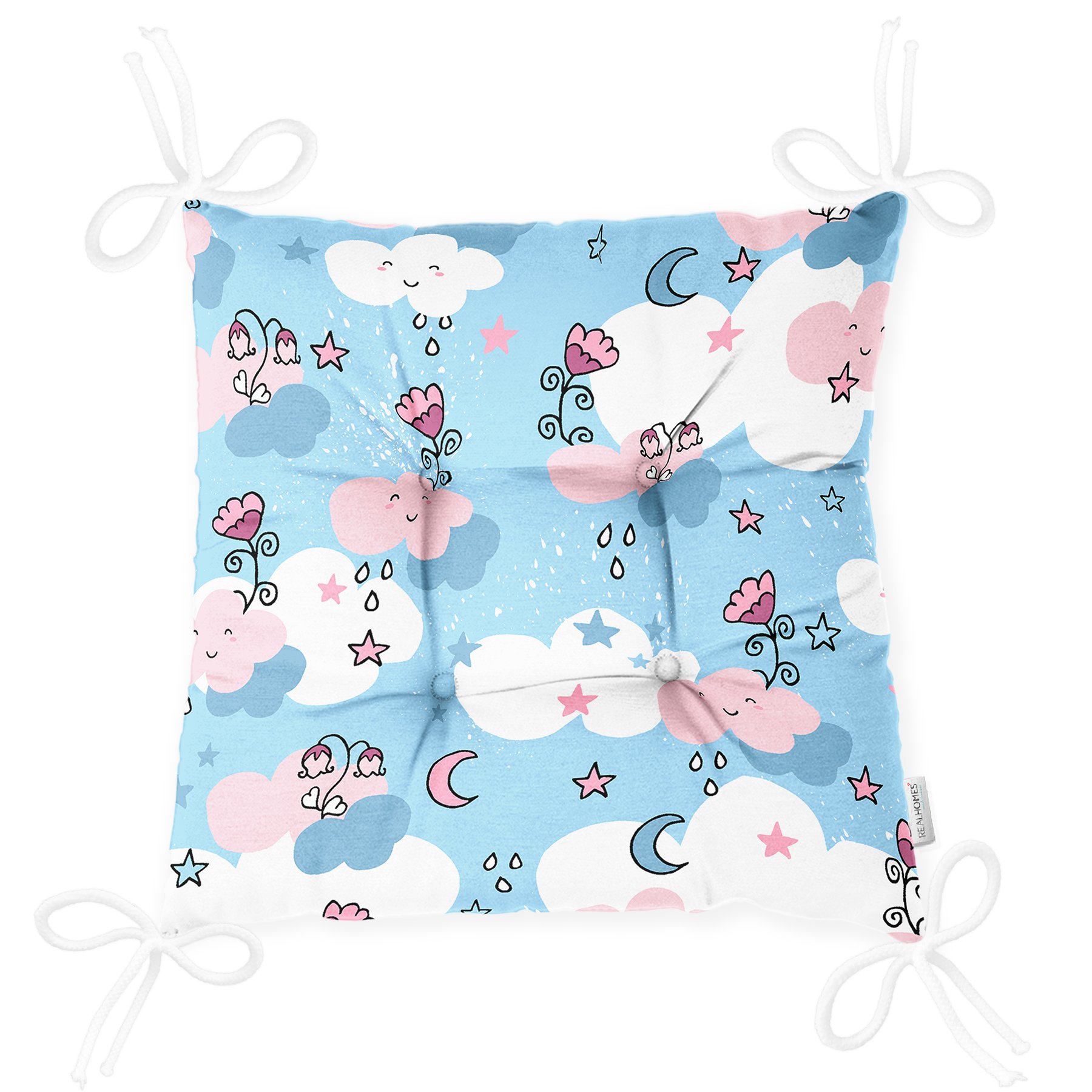 Sevimli Bulut Temalı Dijital Baskılı Özel Tasarım Modern Pofidik Sandalye Minderi