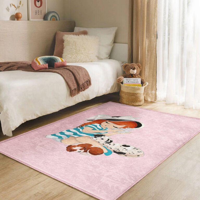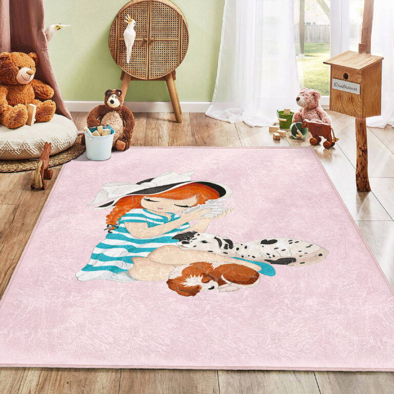 Sevimli Çocuk Desenli Renkli Dikdörtgen Kaymaz Taban Halı – Çocuk Odası için Yıkanabilir Halı