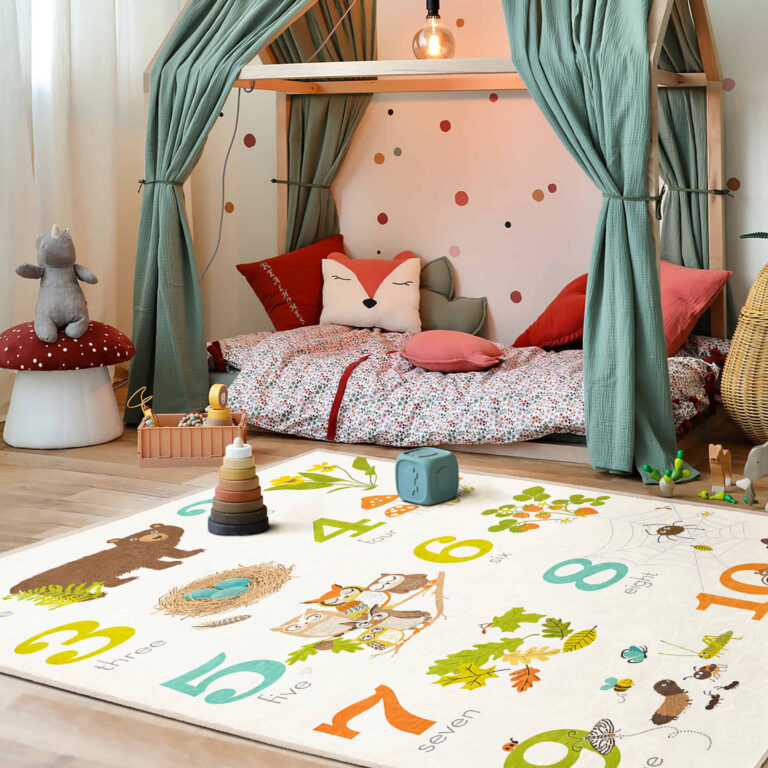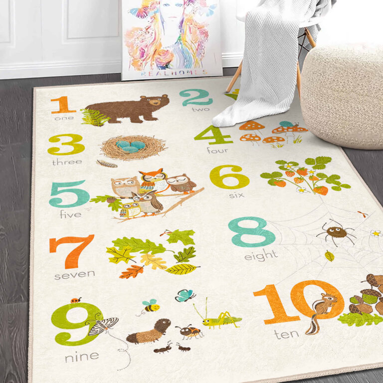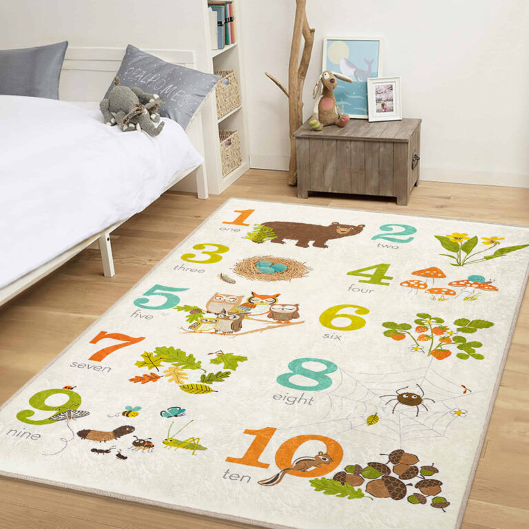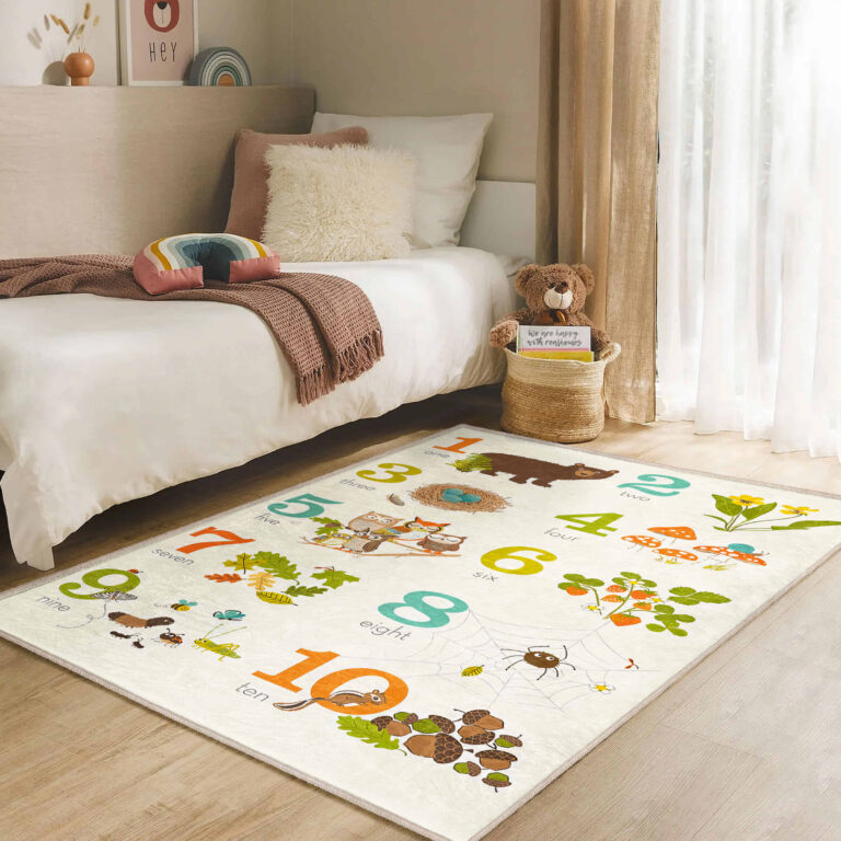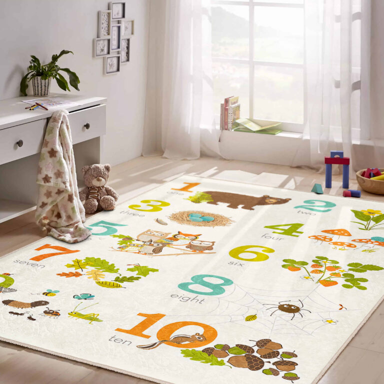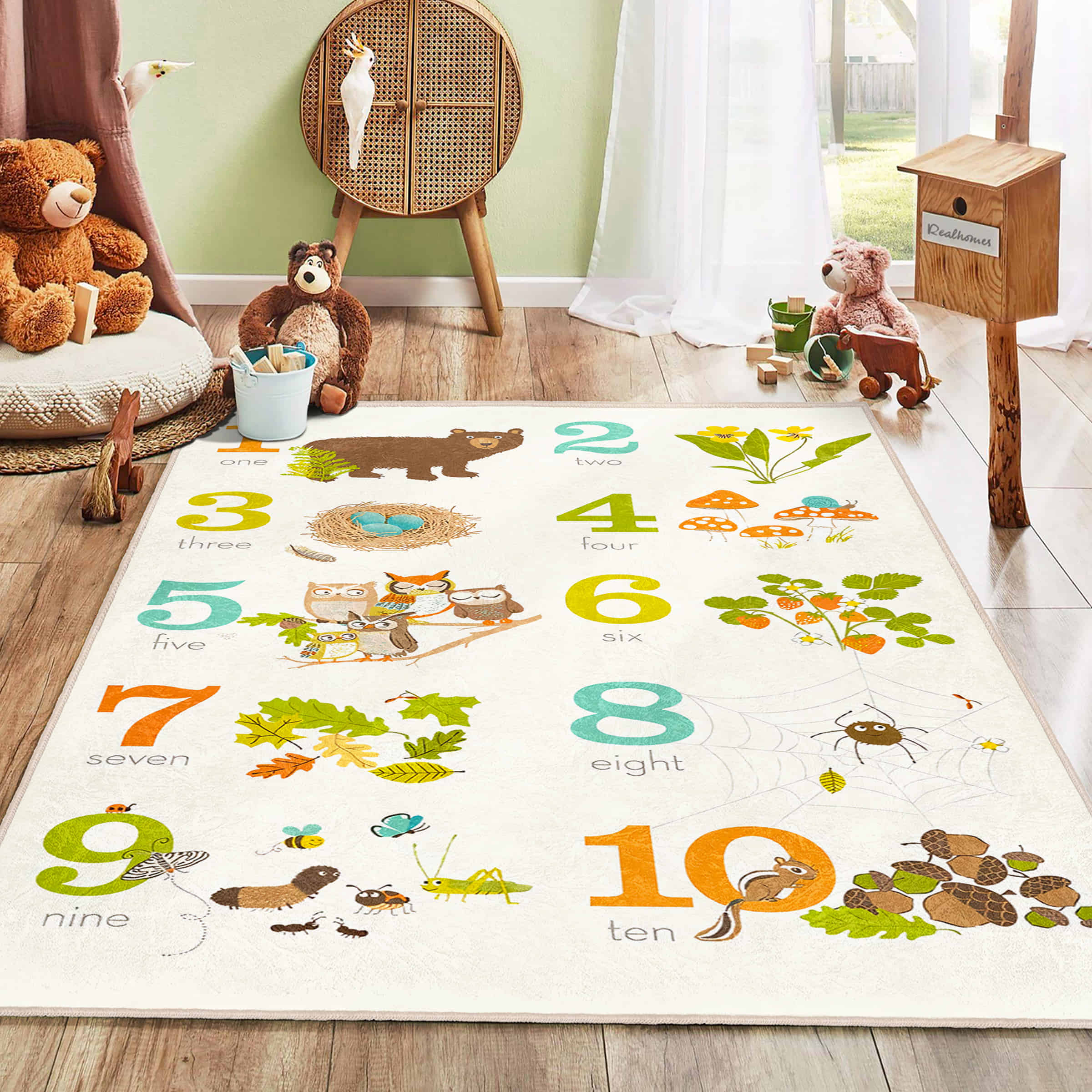 Sevimli Hayvan Motifli Renkli Çocuk Halısı – Kaymaz Tabanlı Makinede Yıkanabilir Dikdörtgen Halı