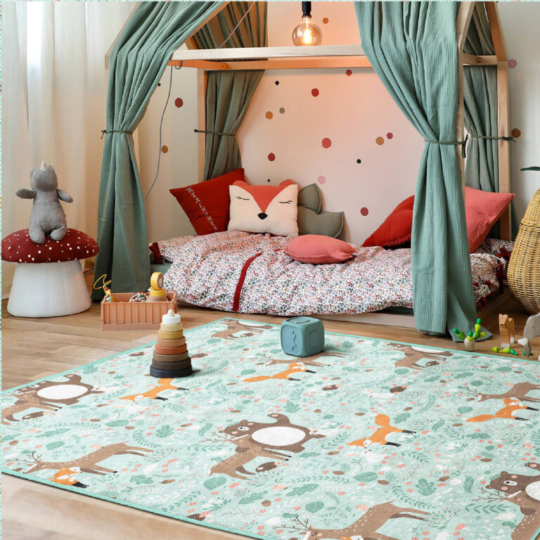 Sevimli Hayvanlar Motifli Çocuk Halısı – Yıkanabilir Kaymaz Tabanlı Dikdörtgen Tasarım