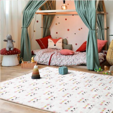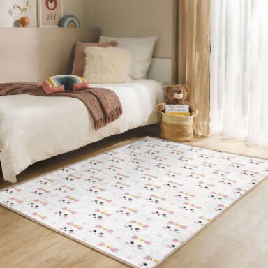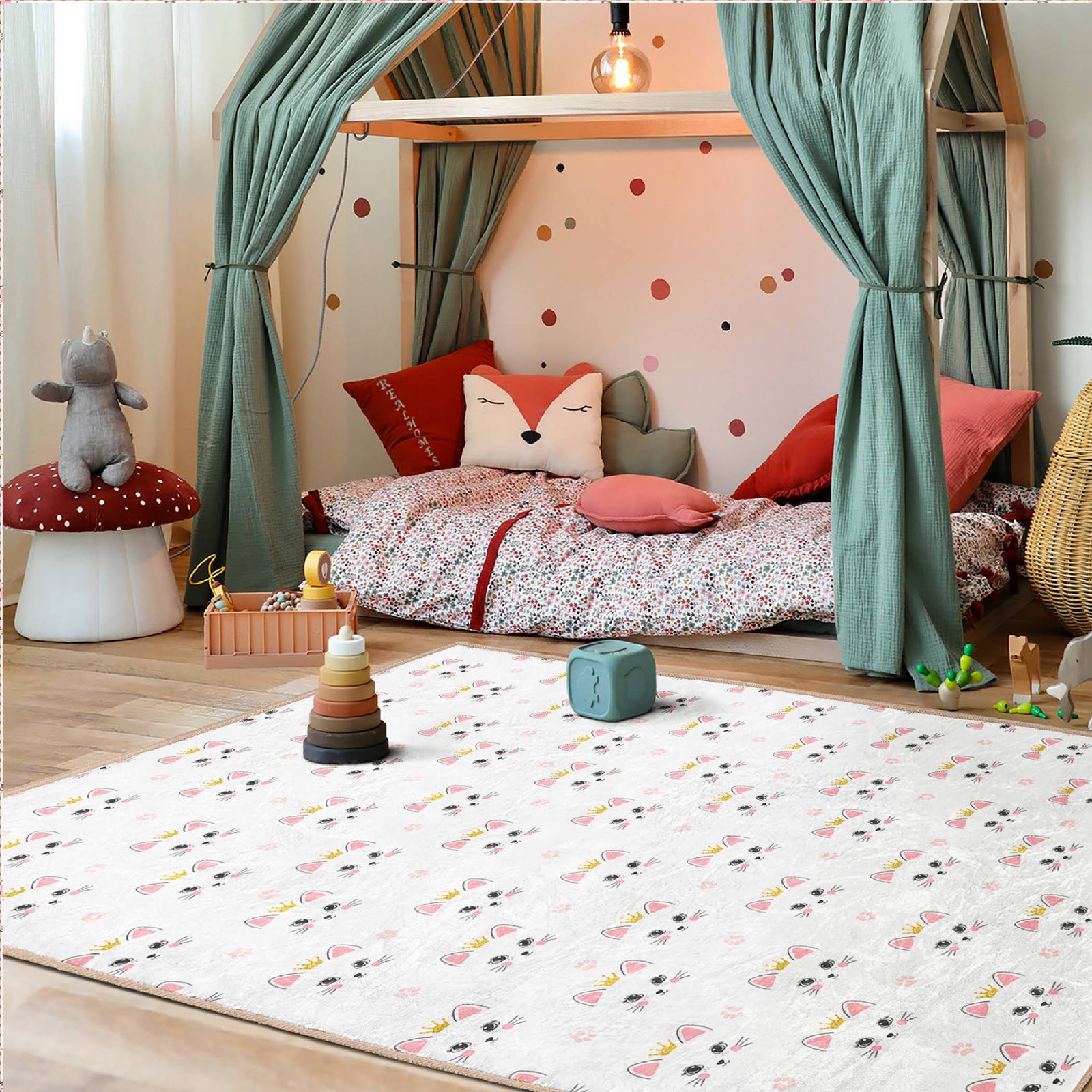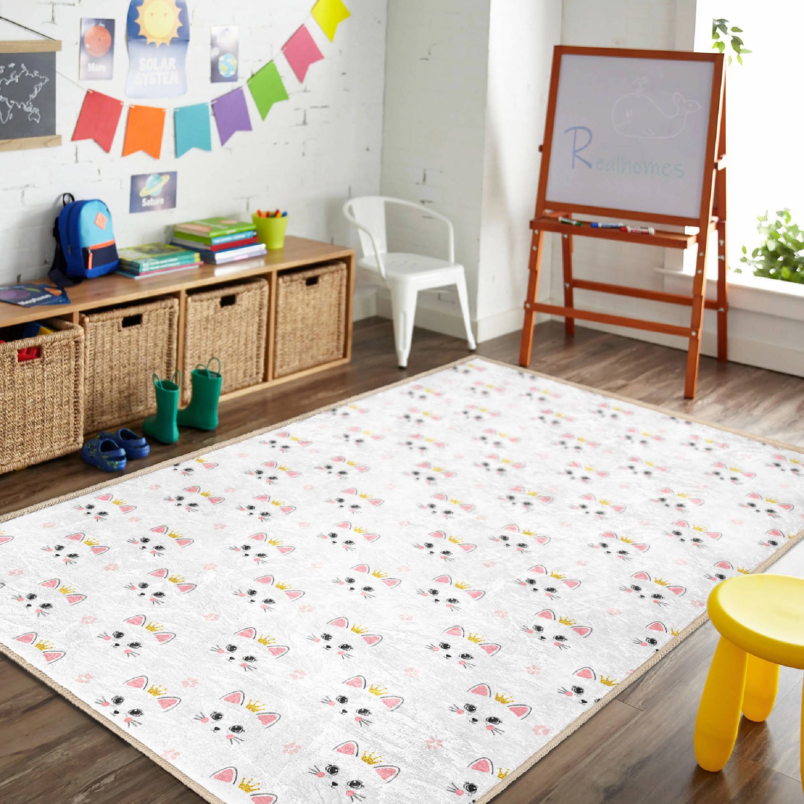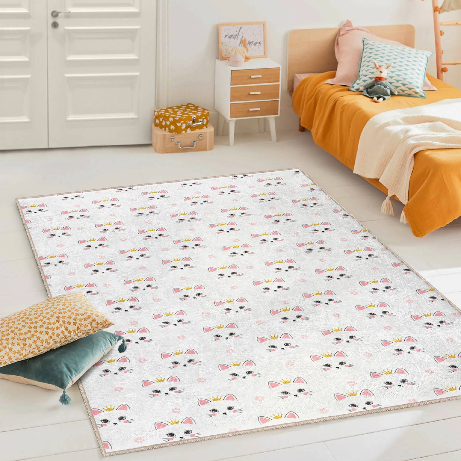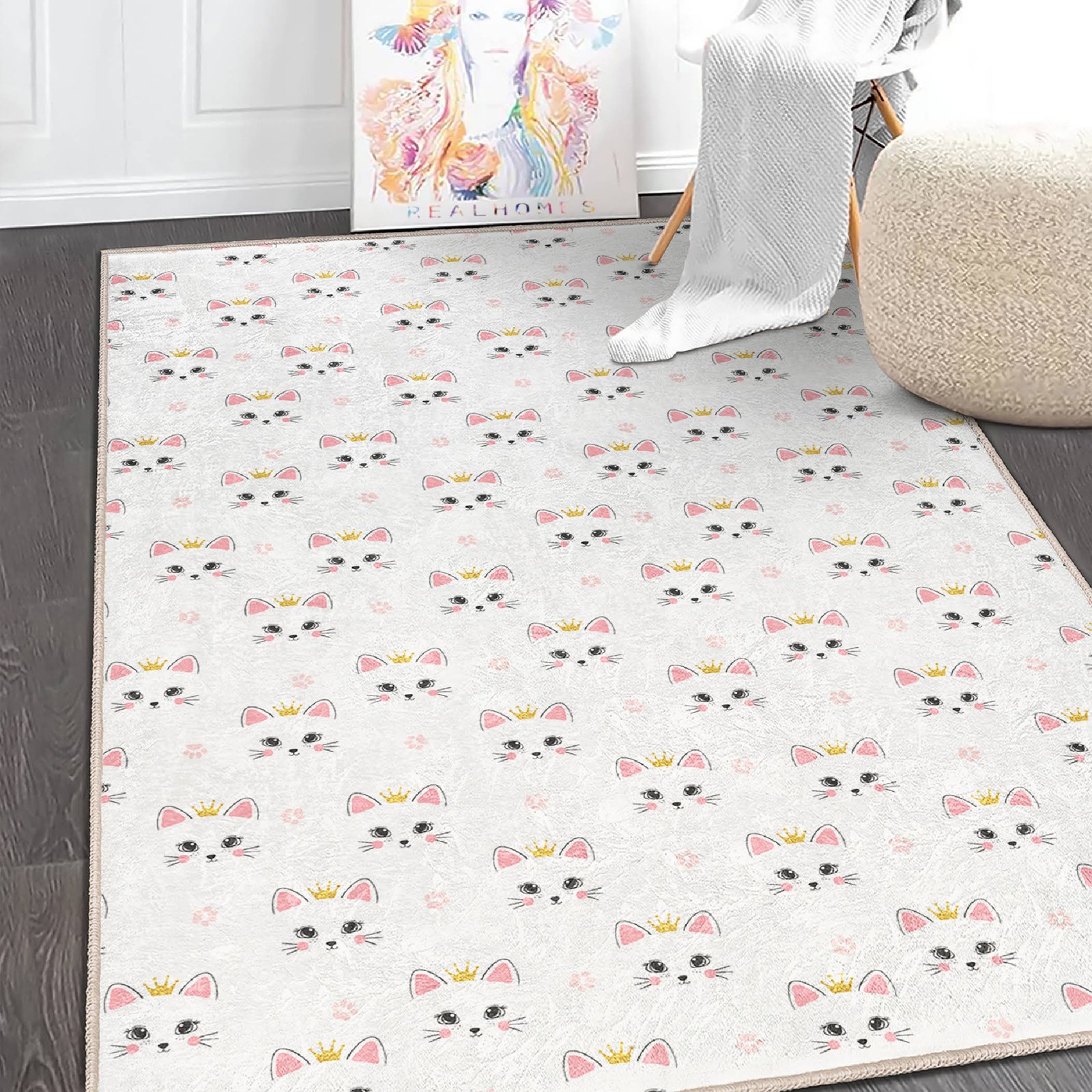 Sevimli Kedi Desenli Dikdörtgen Çocuk Odası için Makinede Yıkanabilir Kaymaz Taban Halı