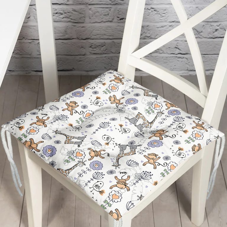 Sevimli Orman Hayvanları Desenli Dijital Baskılı Özel Tasarım Modern Pofidik Sandalye Minderi