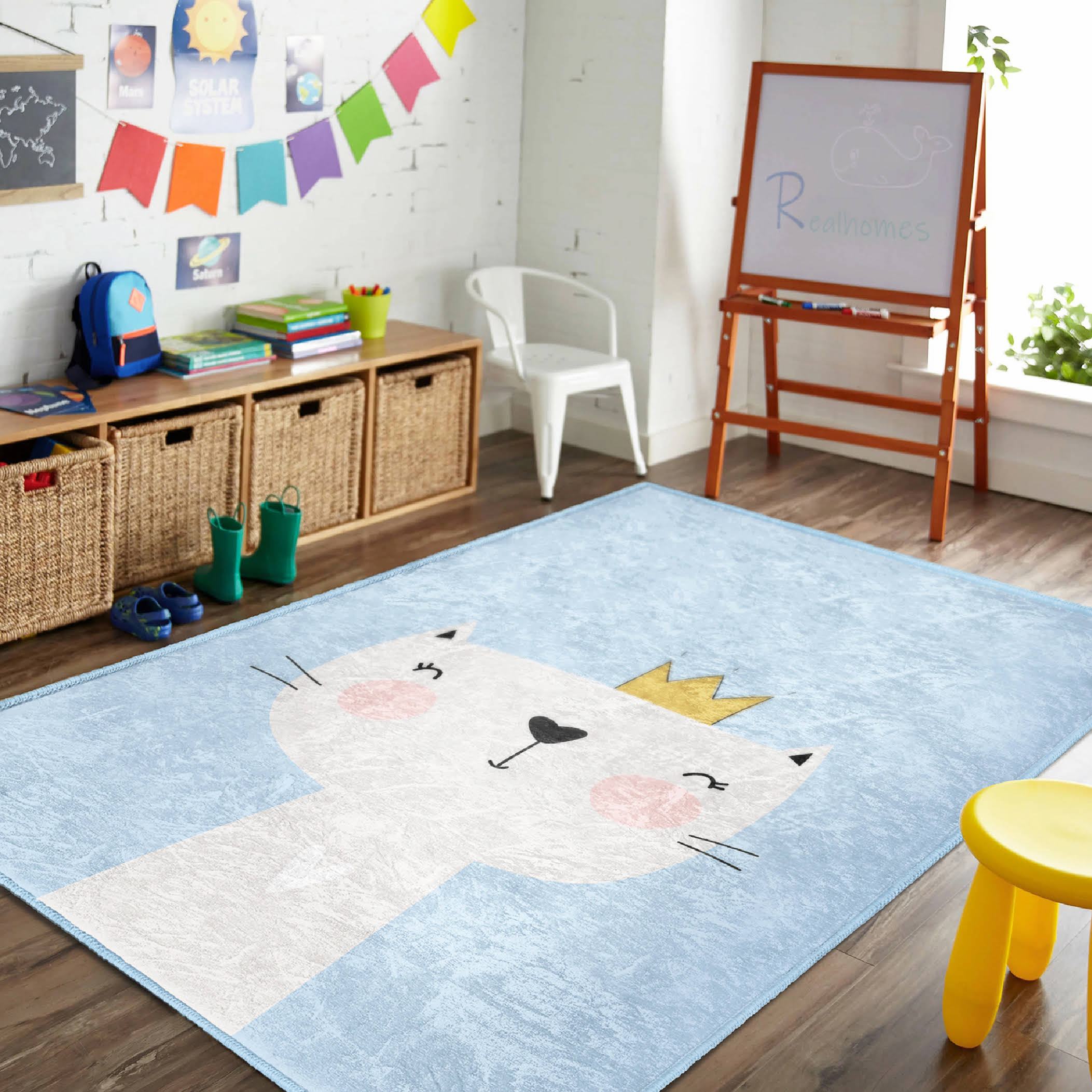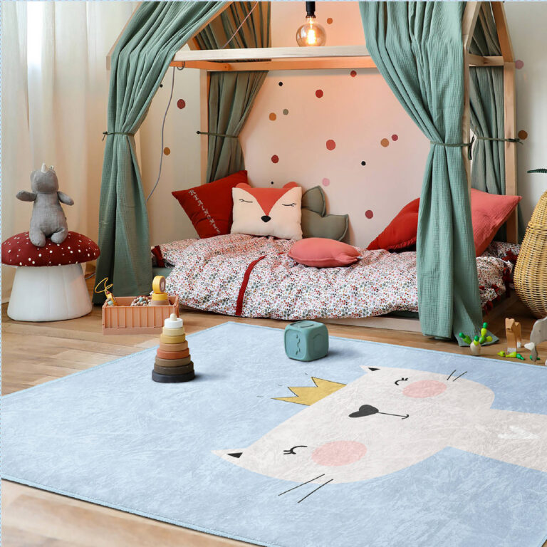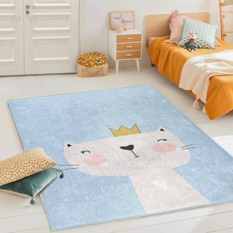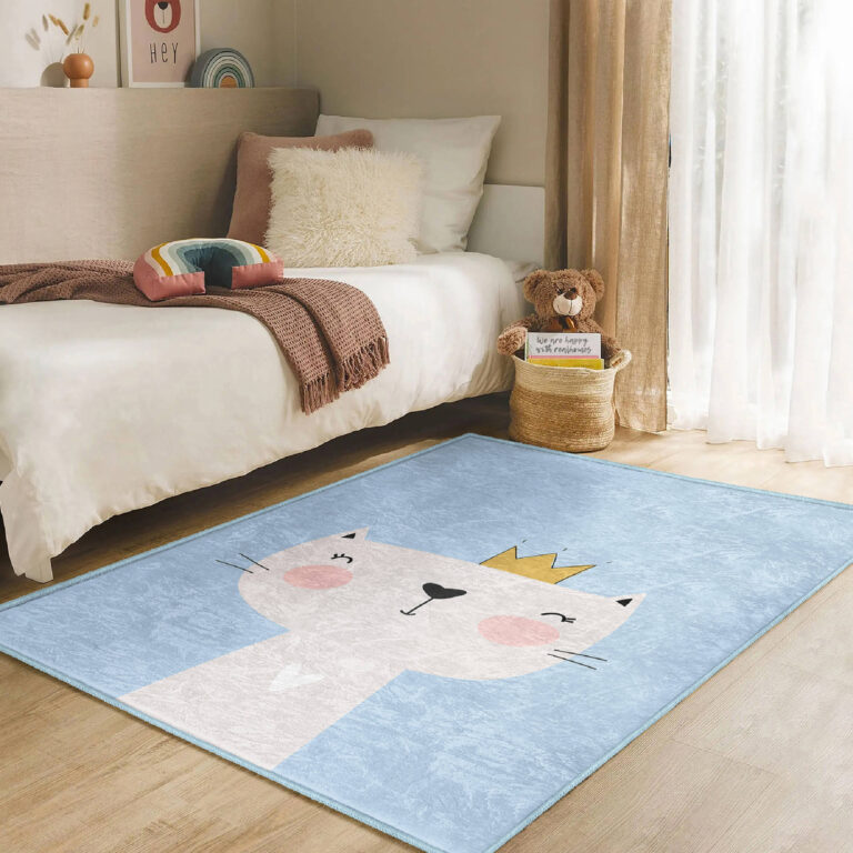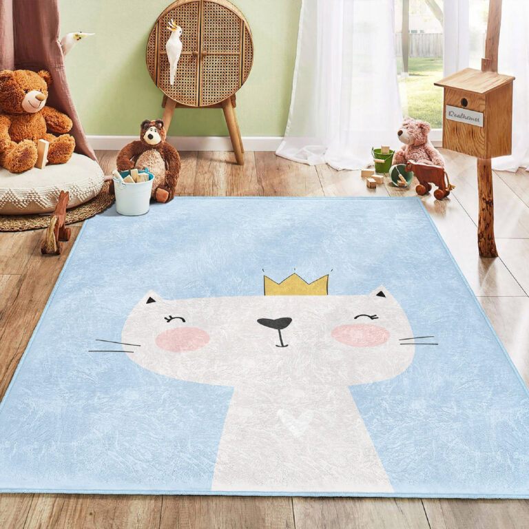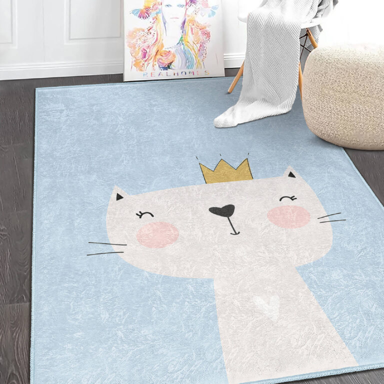 Sevimli Pembe Kedi Desenli Çocuk Halısı – Yıkanabilir Kaymaz Tabanlı Dikdörtgen Halı