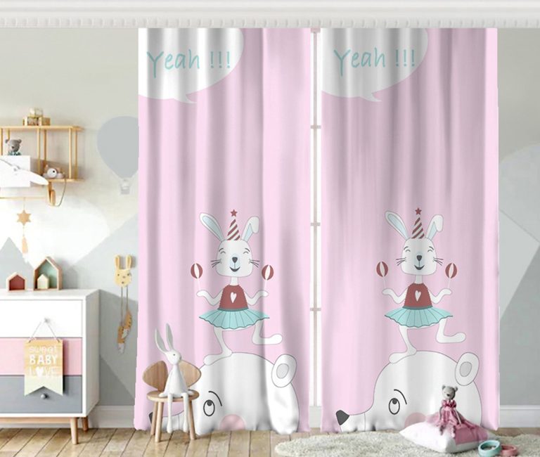 Sevimli Sirk Tavşanı Çocuk Odası Fon Perde