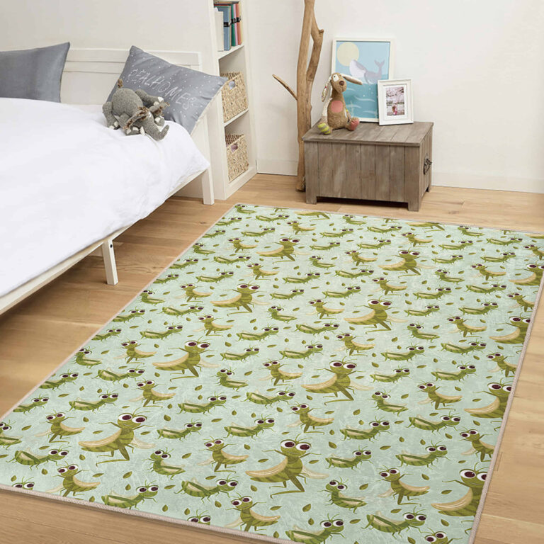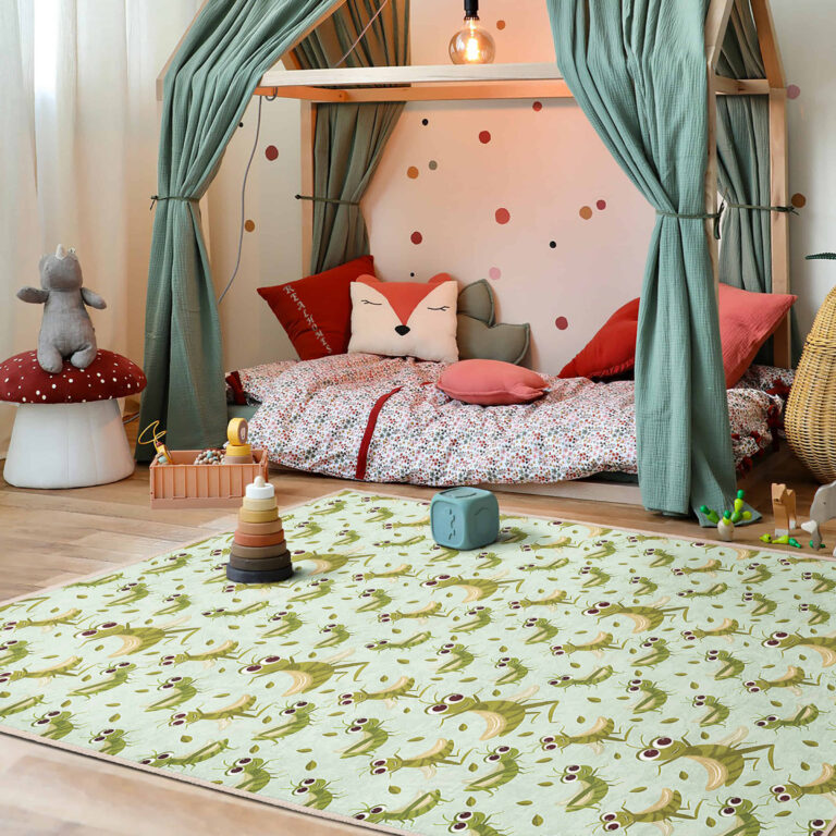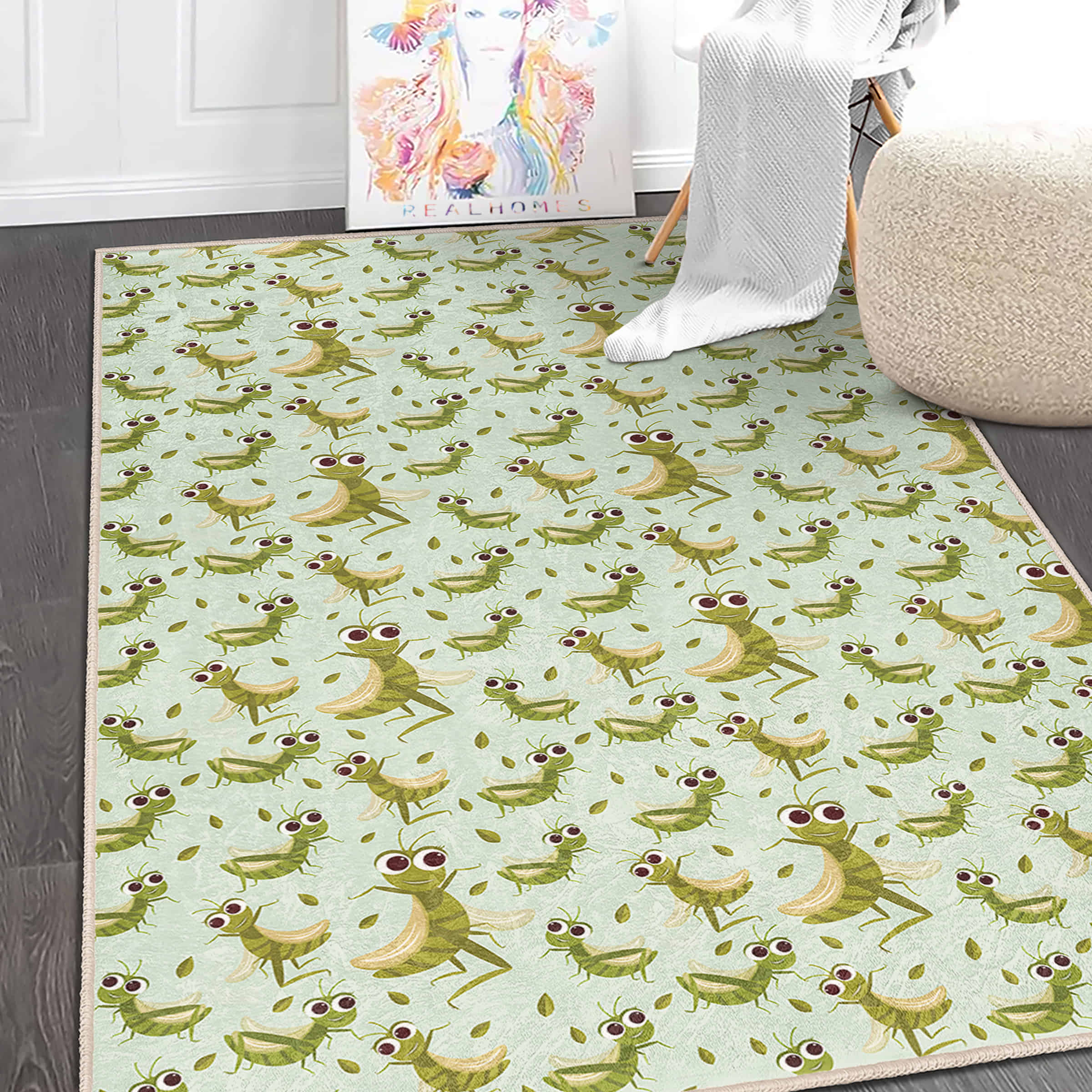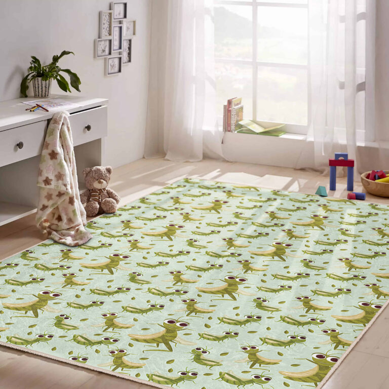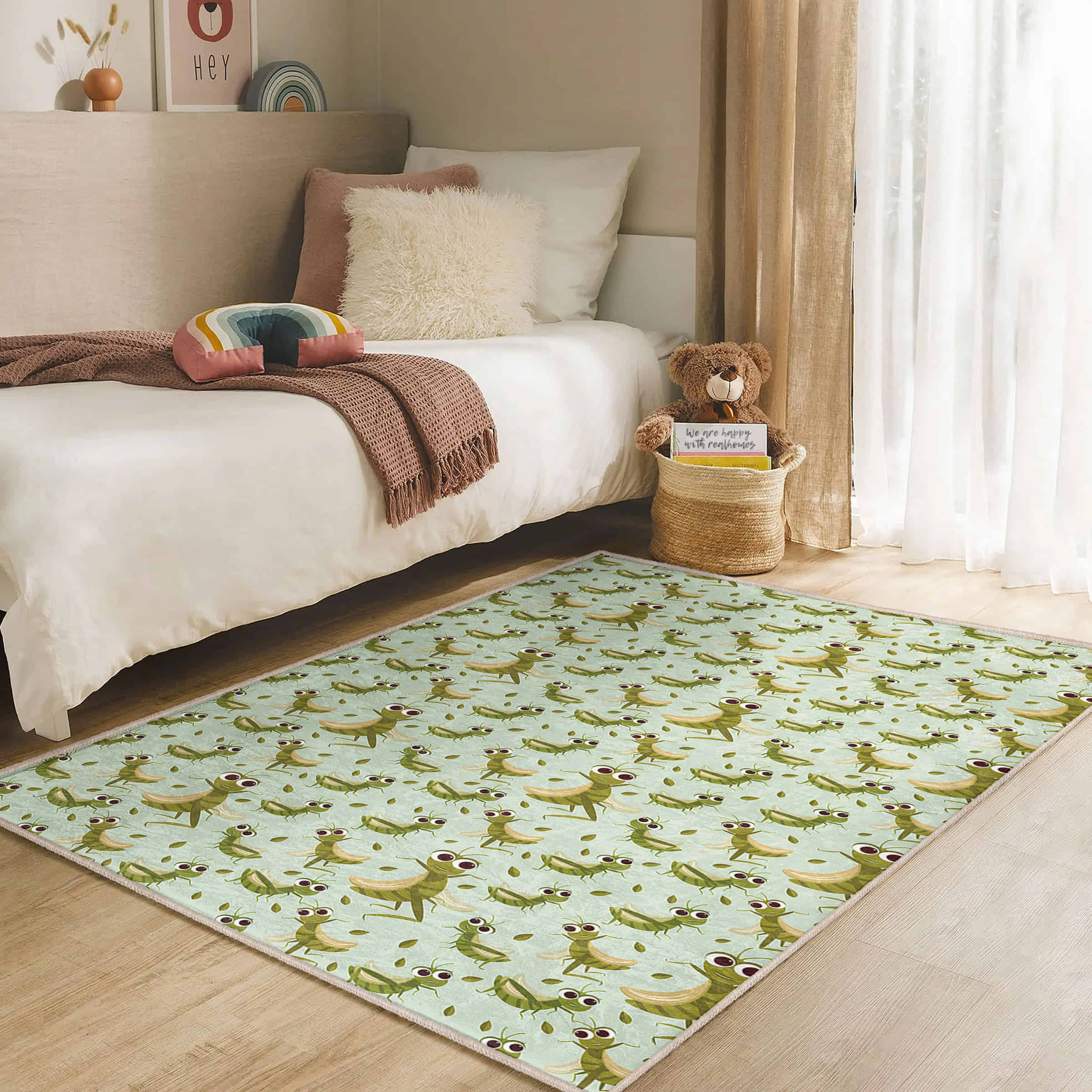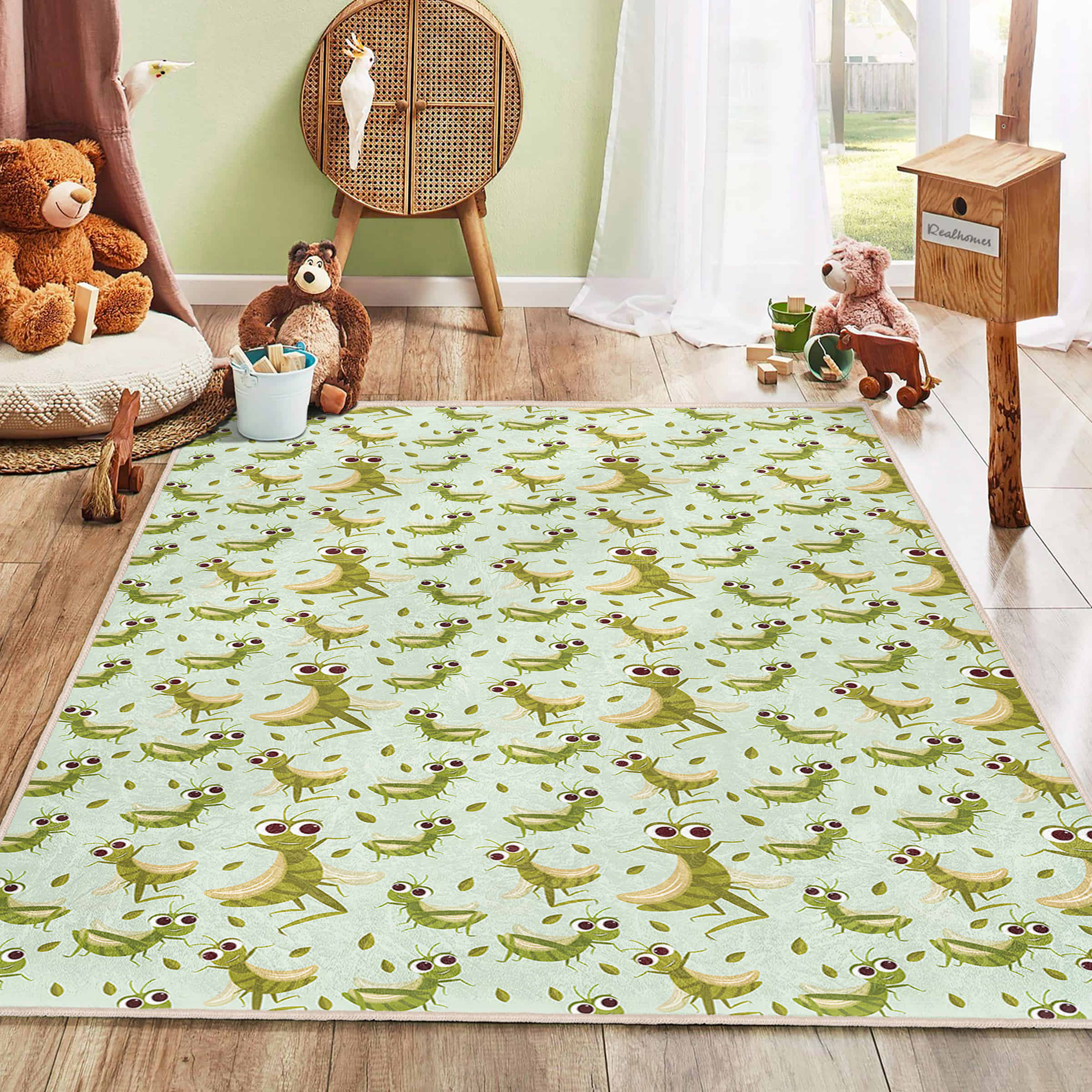 Sevimli Zıplayan Böcek Desenli Dikdörtgen Çocuk Halısı – Yıkanabilir Kaymaz Taban