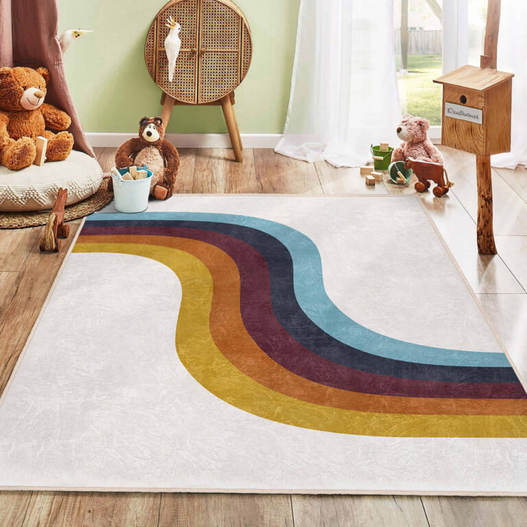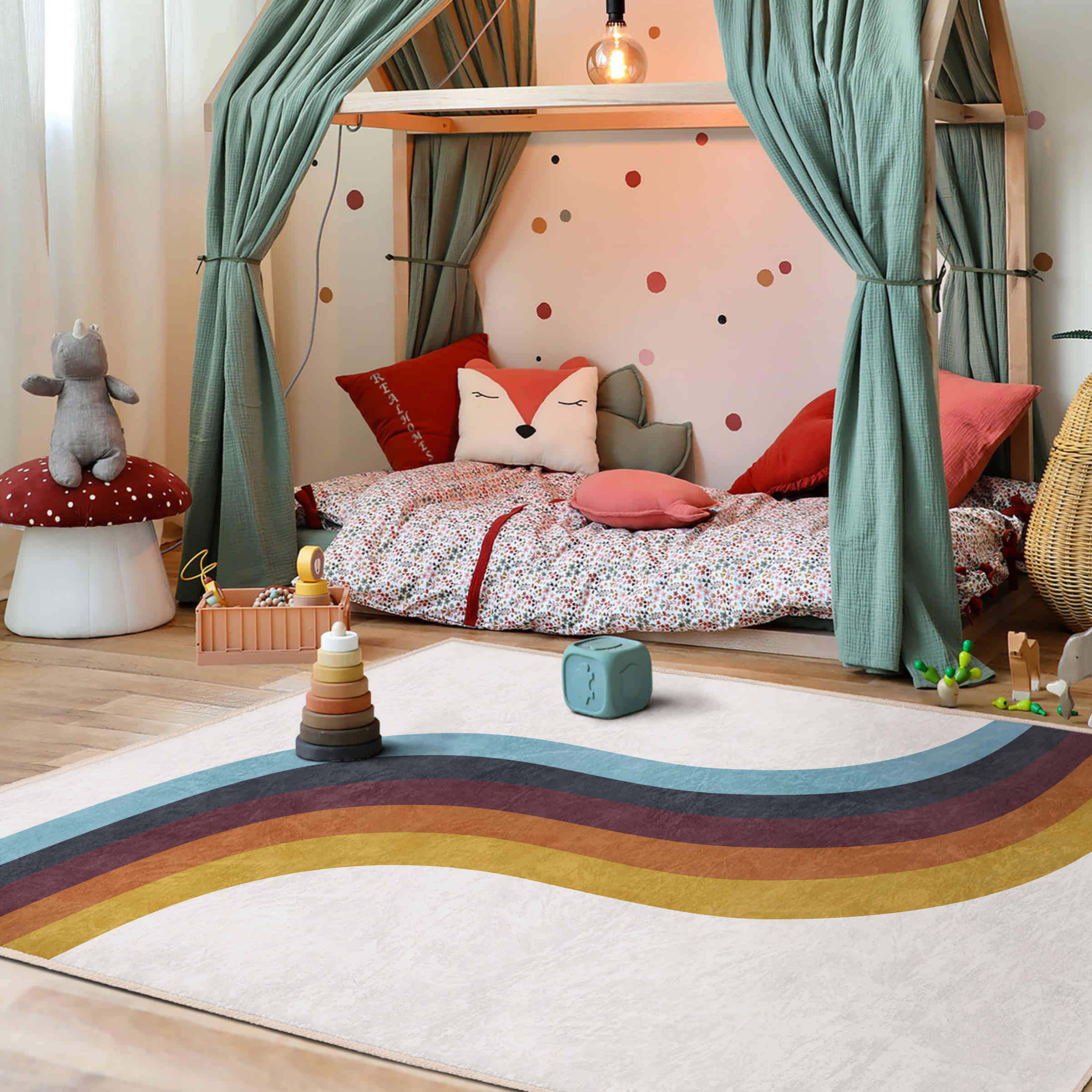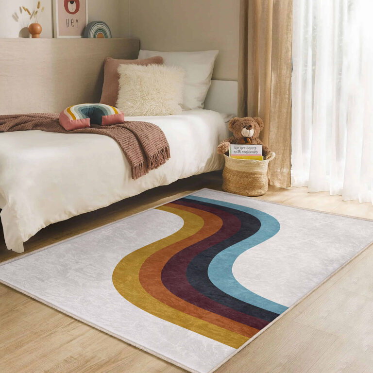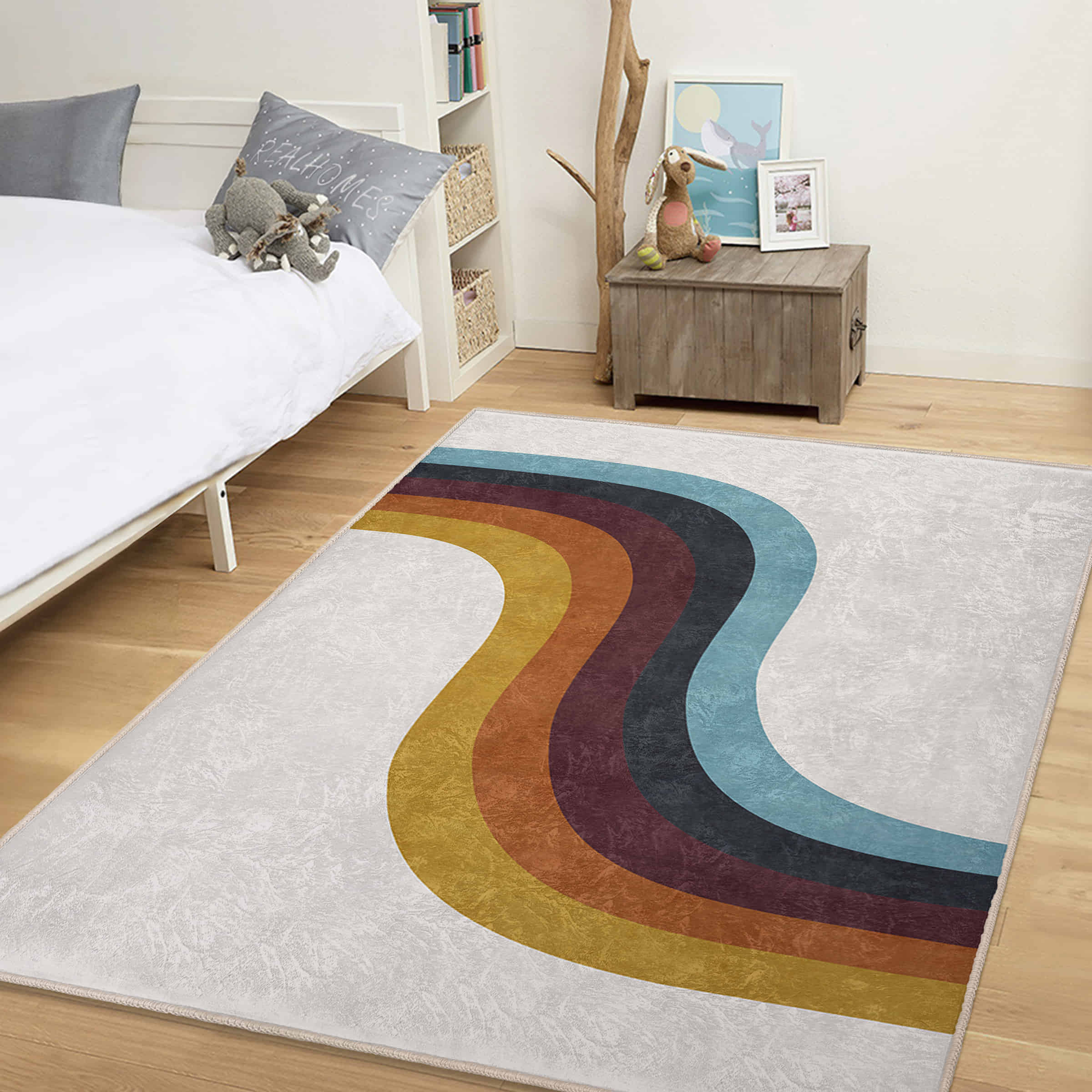 Sıcak Renklerle Tasarlanmış Modern Çocuk Halısı – Yıkanabilir Kaymaz Taban Dikdörtgen Halı
