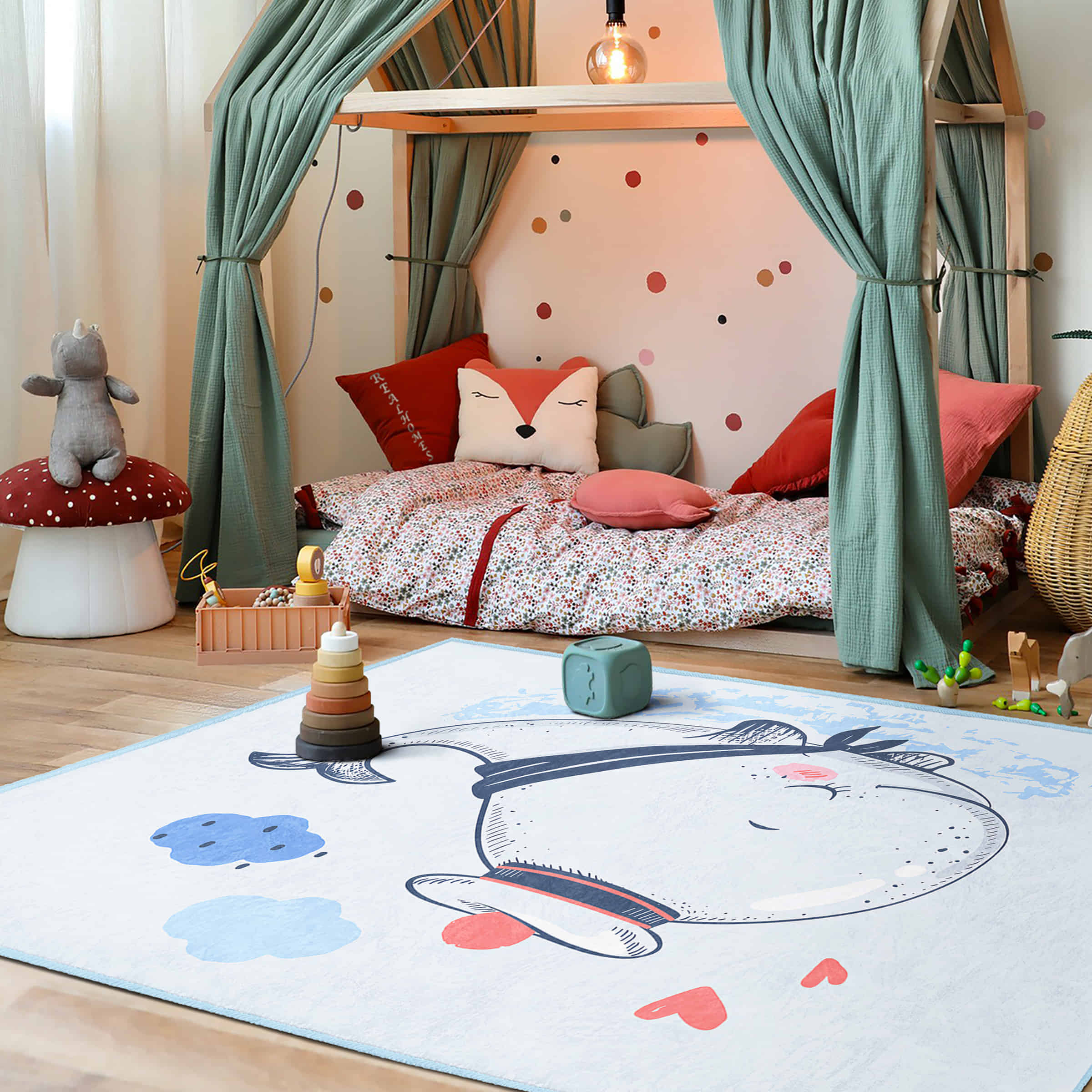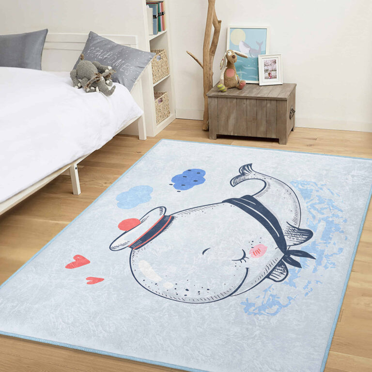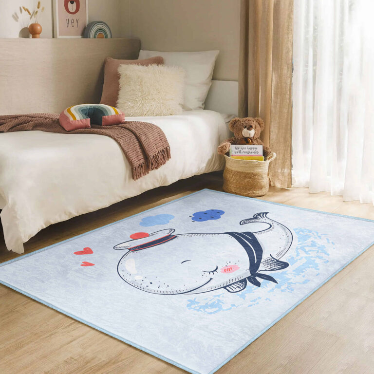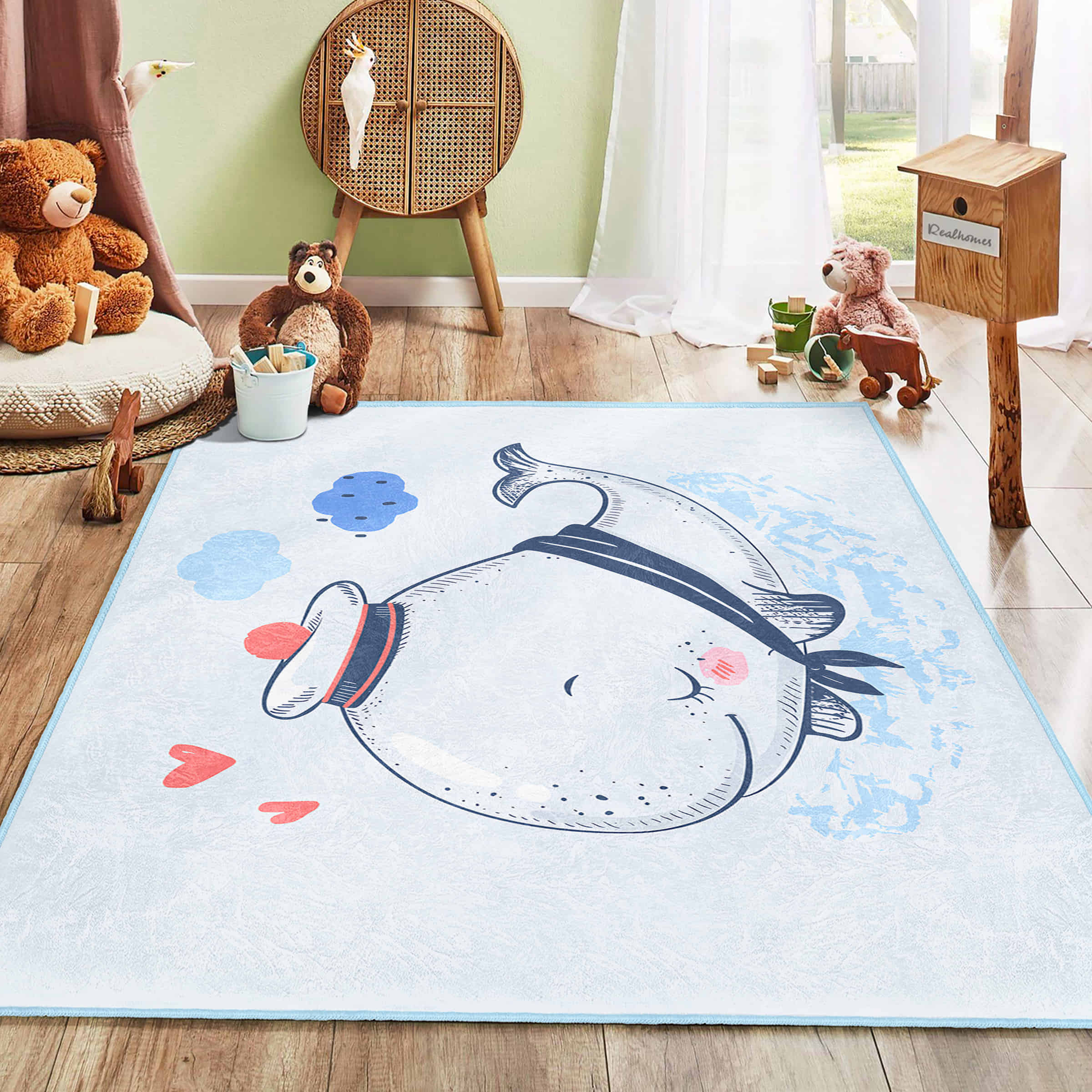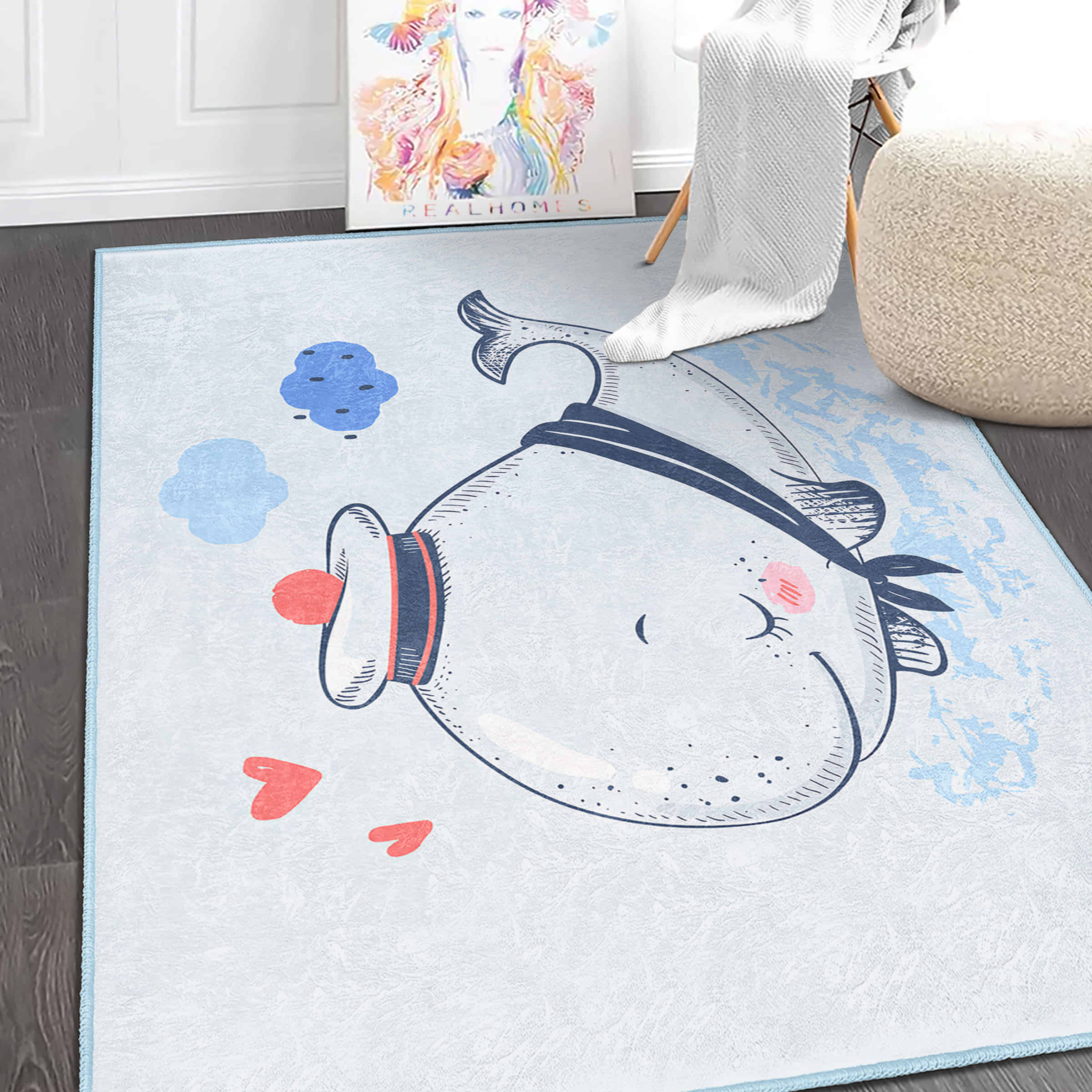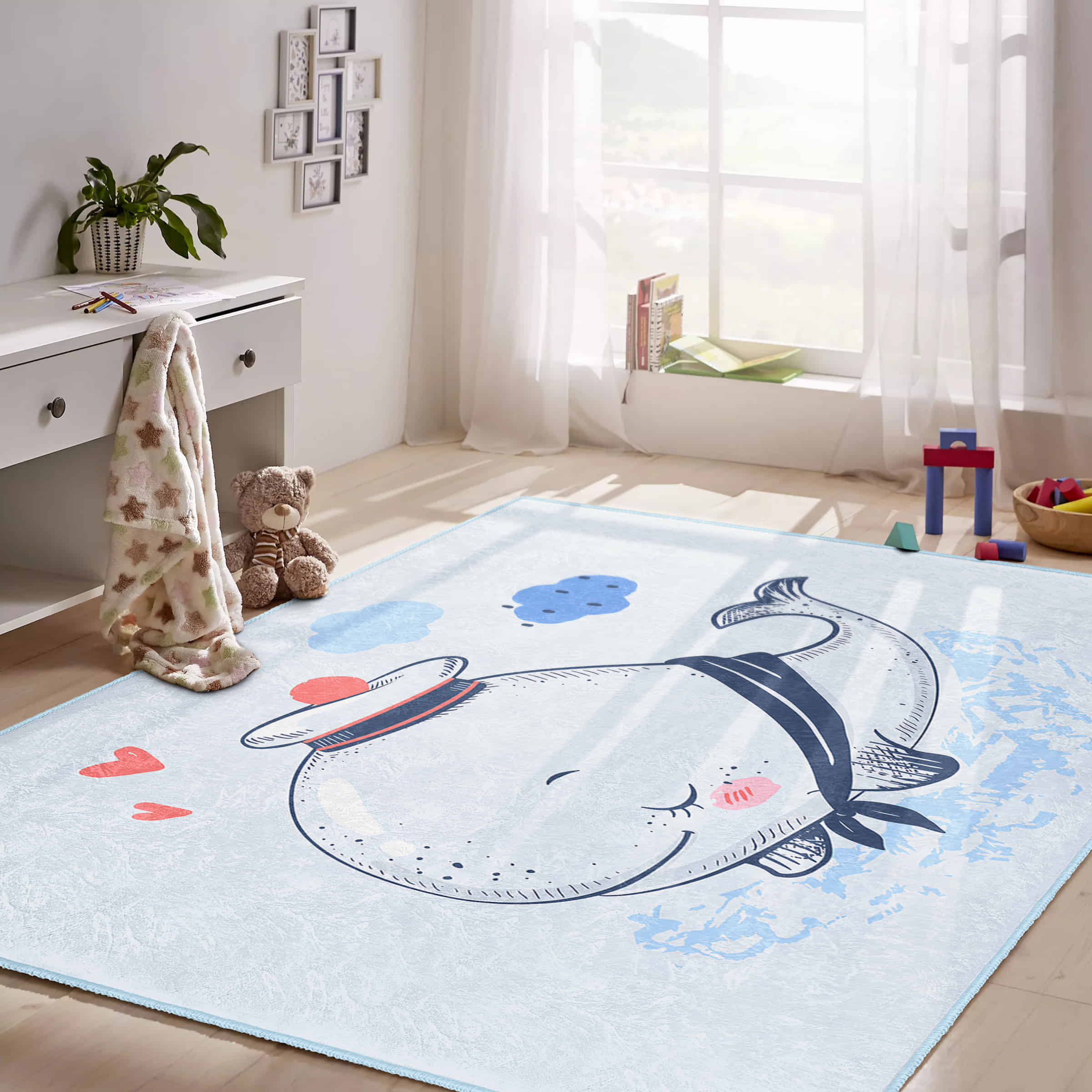Şirin Balina Desenli Dikdörtgen Yıkanabilir Kaymaz Taban Çocuk Halısı – Çocuk Odası İçin Ideal Seçim
