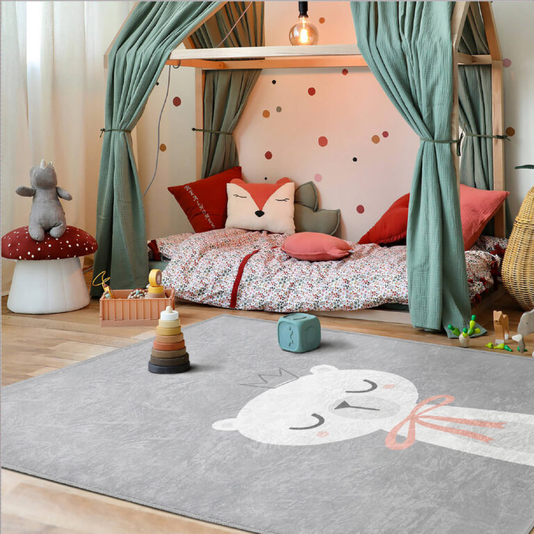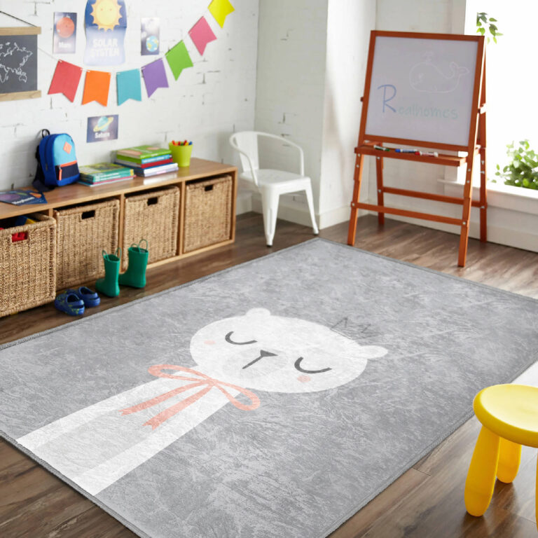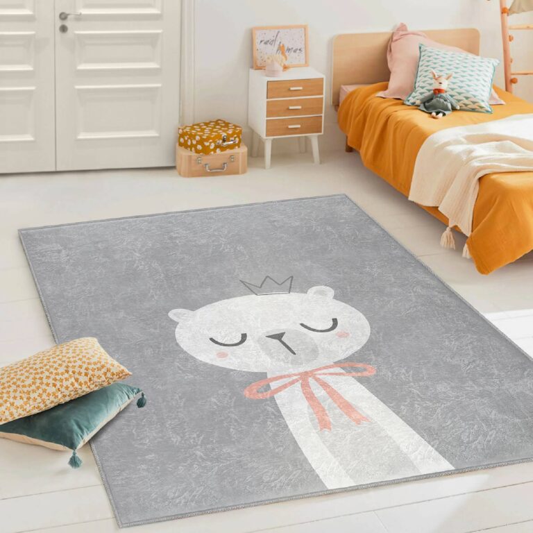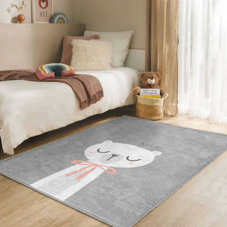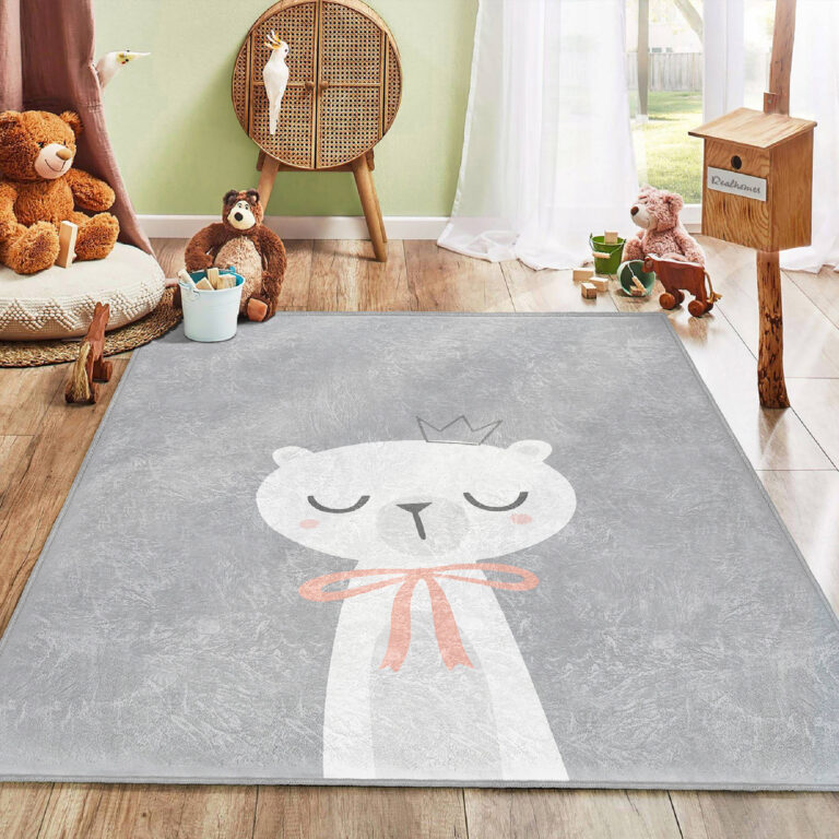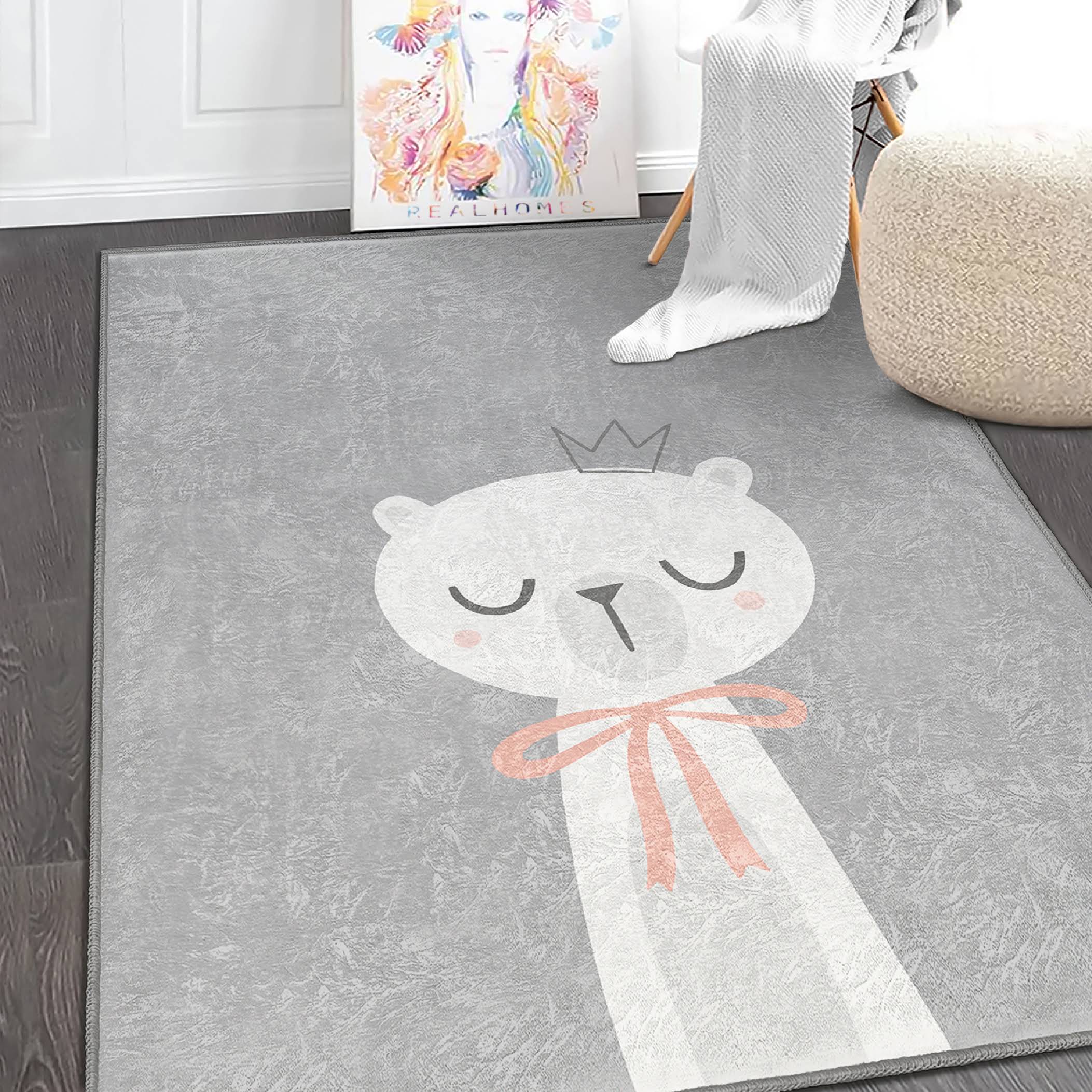 Şirin Beyaz Ayı Temalı Yıkanabilir Kaymaz Taban Çocuk Halısı – Dikdörtgen Şekilde Tasarlandı