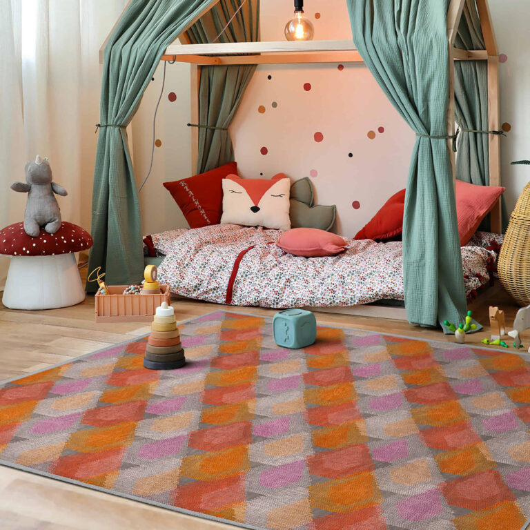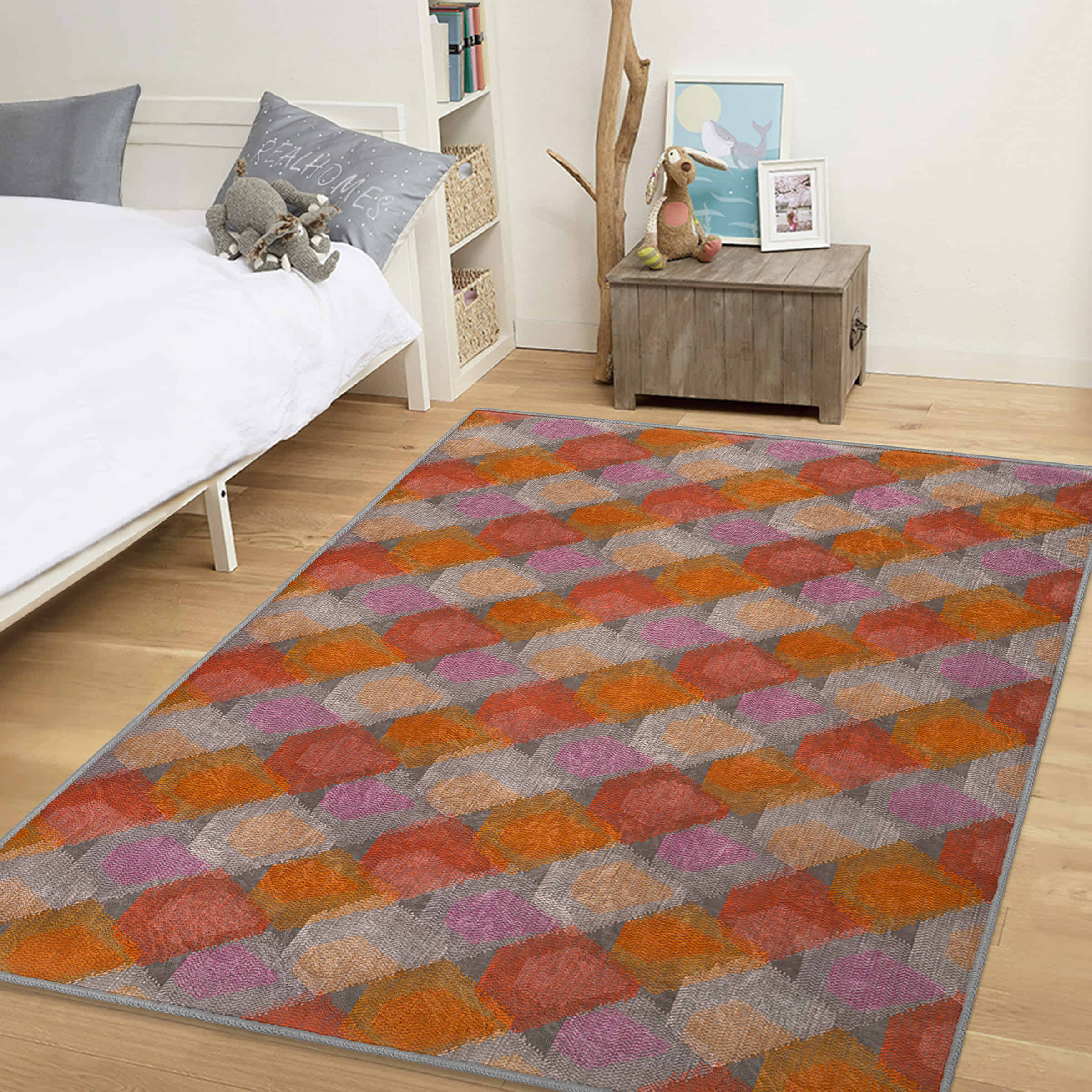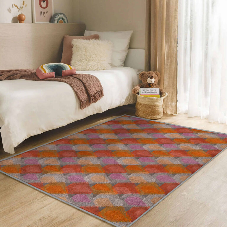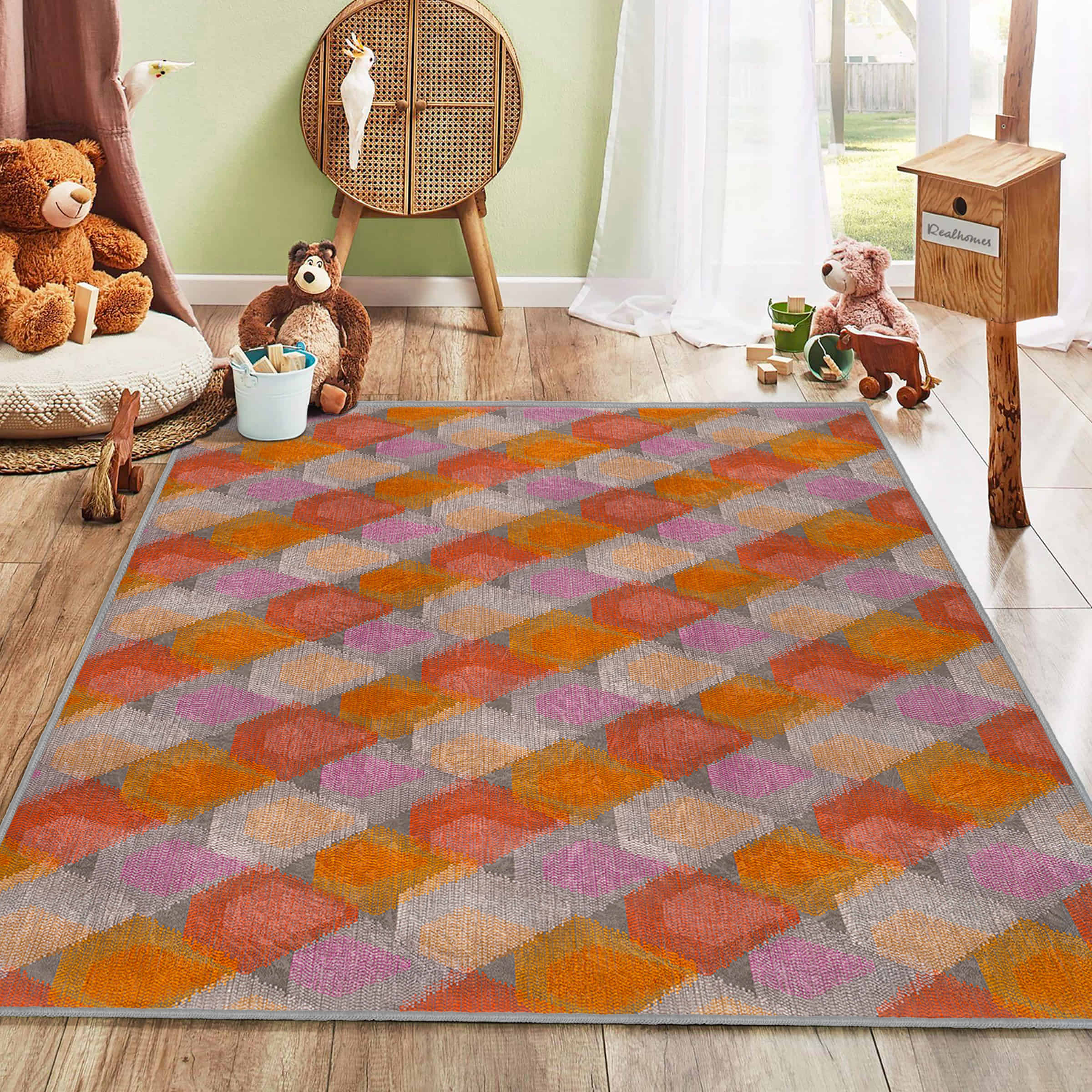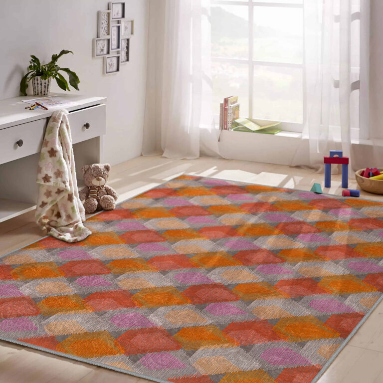 Şirin Çokgen Desenli Renkli Çocuk Halısı – Kaymaz Tabanlı ve Makinede Yıkanabilir Dikdörtgen Halı