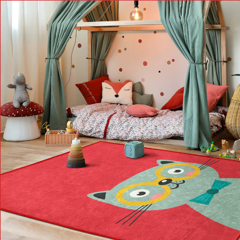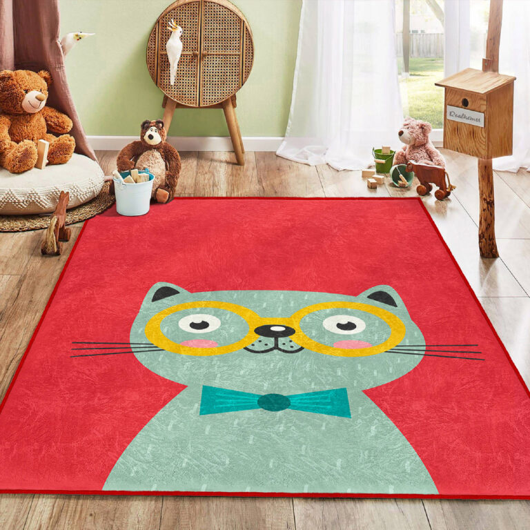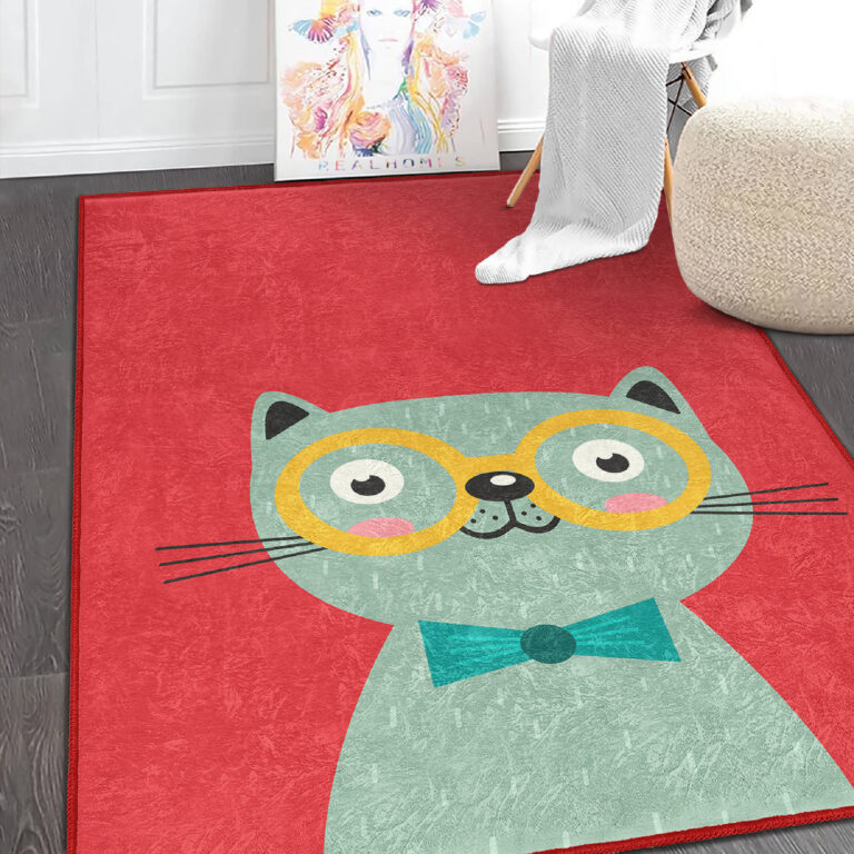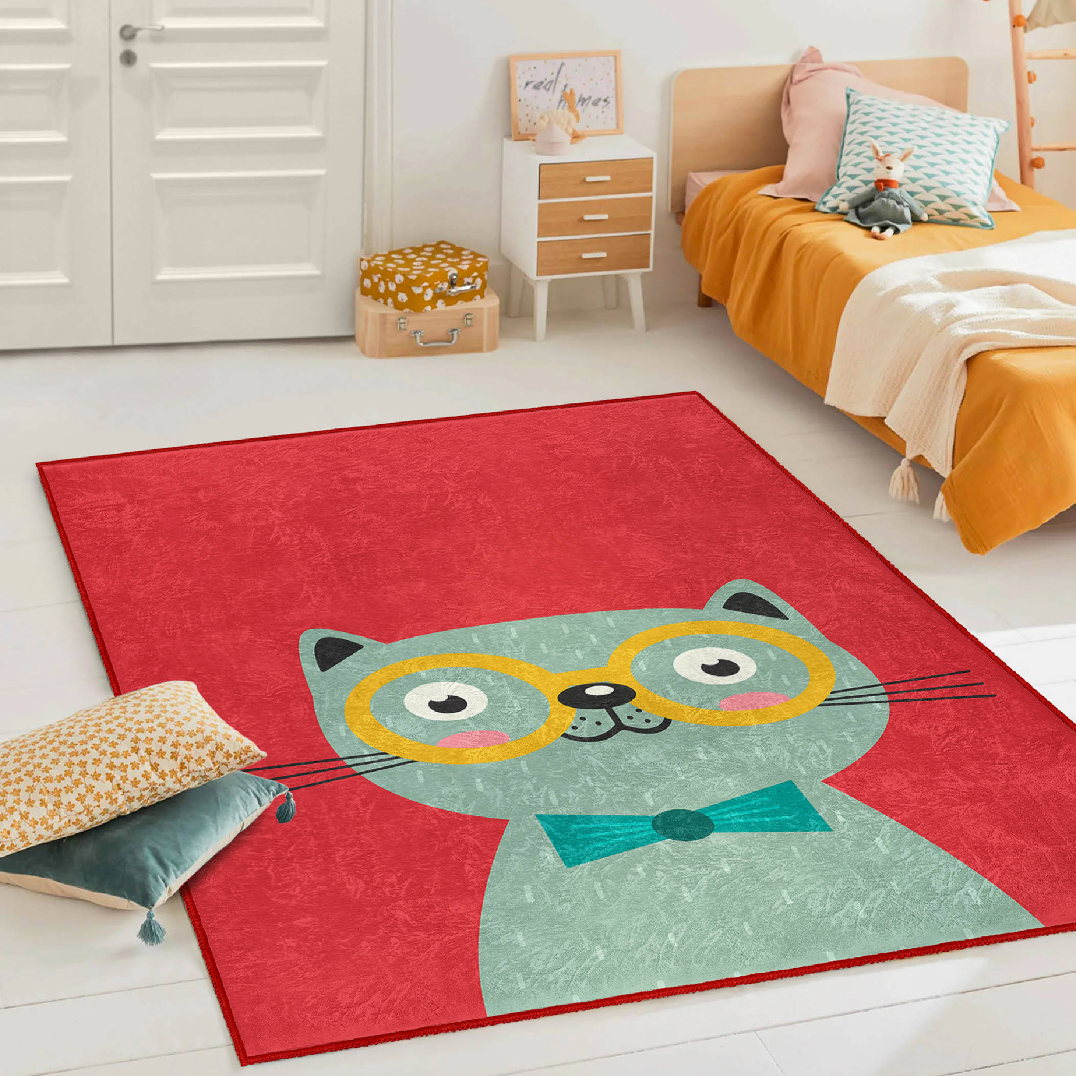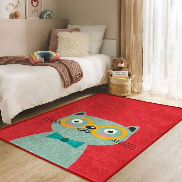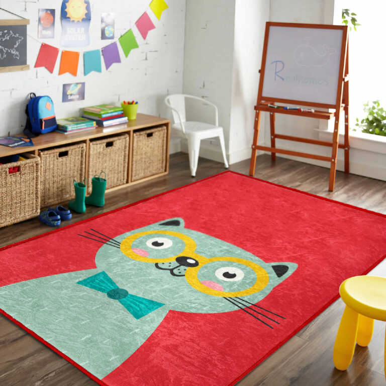 Şirin Kedi Desenli Yıkanabilir Kaymaz Taban Çocuk Halısı – Dikdörtgen Şekilde Tasarlandı