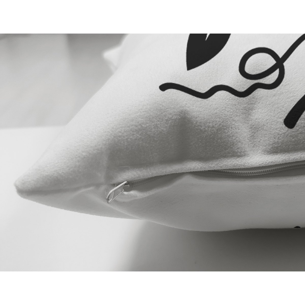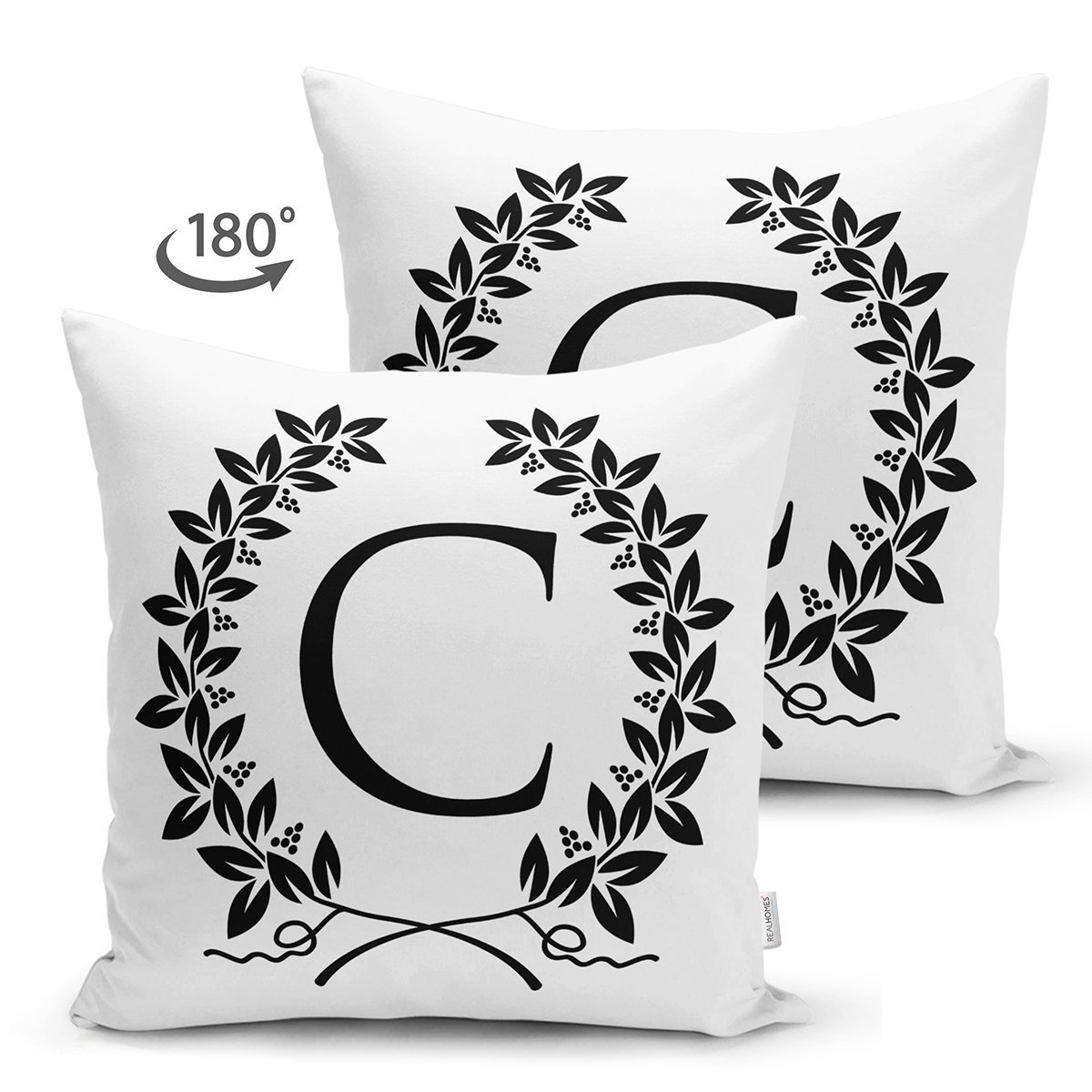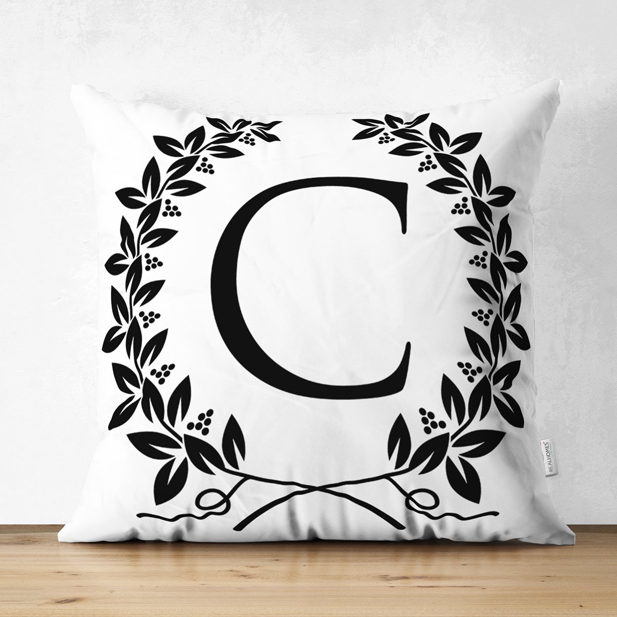 Siyah Beyaz Çelenkli C Harfi Özel Tasarım Modern Suet Yastık Kırlent Kılıfı