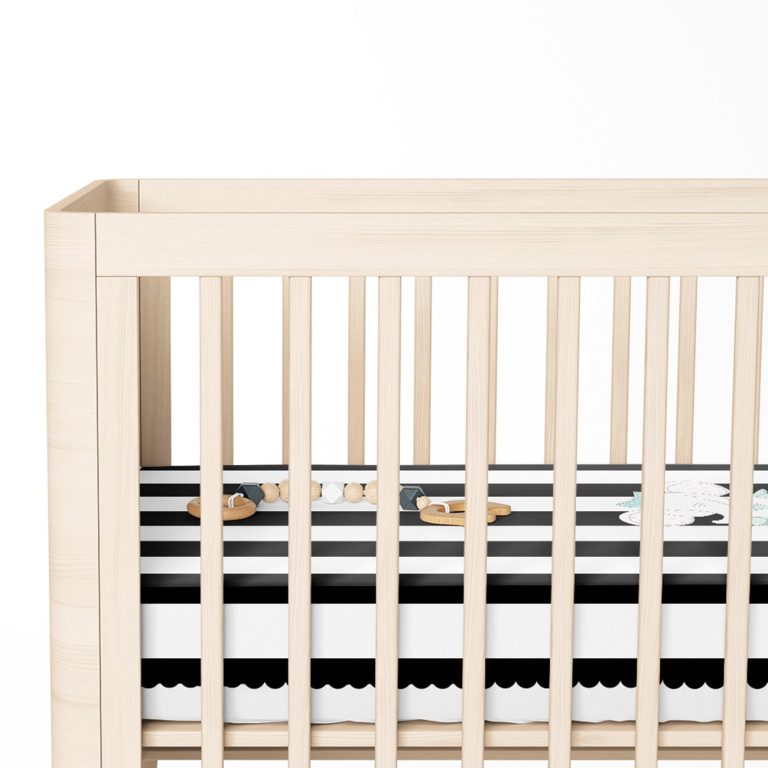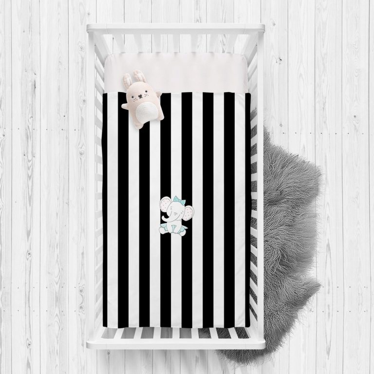 Siyah Beyaz Çizgili Fil Motifli Bebek Odası Yatak Örtüsü