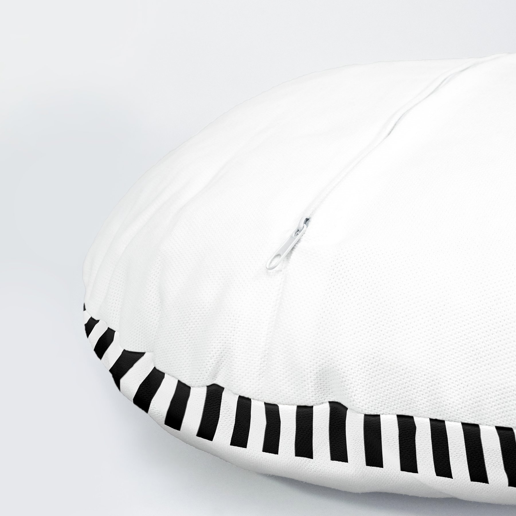 Siyah Beyaz Çizgili Tasarım Dekoratif Yuvarlak Yastık Kırlent Kılıfı