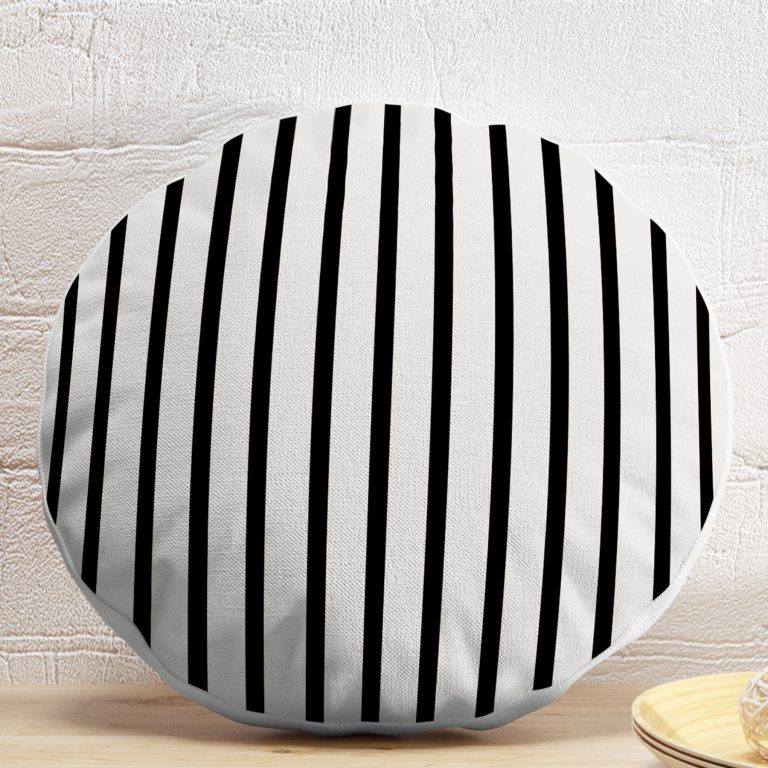 Siyah Beyaz Düz Çizgili Modern Yuvarlak Yastık Kırlent Kılıfı