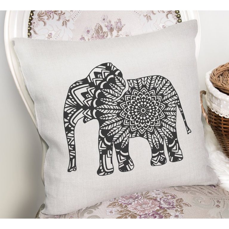 Siyah Beyaz Fil Tasarımlı Dijital Baskılı Yastık Kırlent Kılıfı